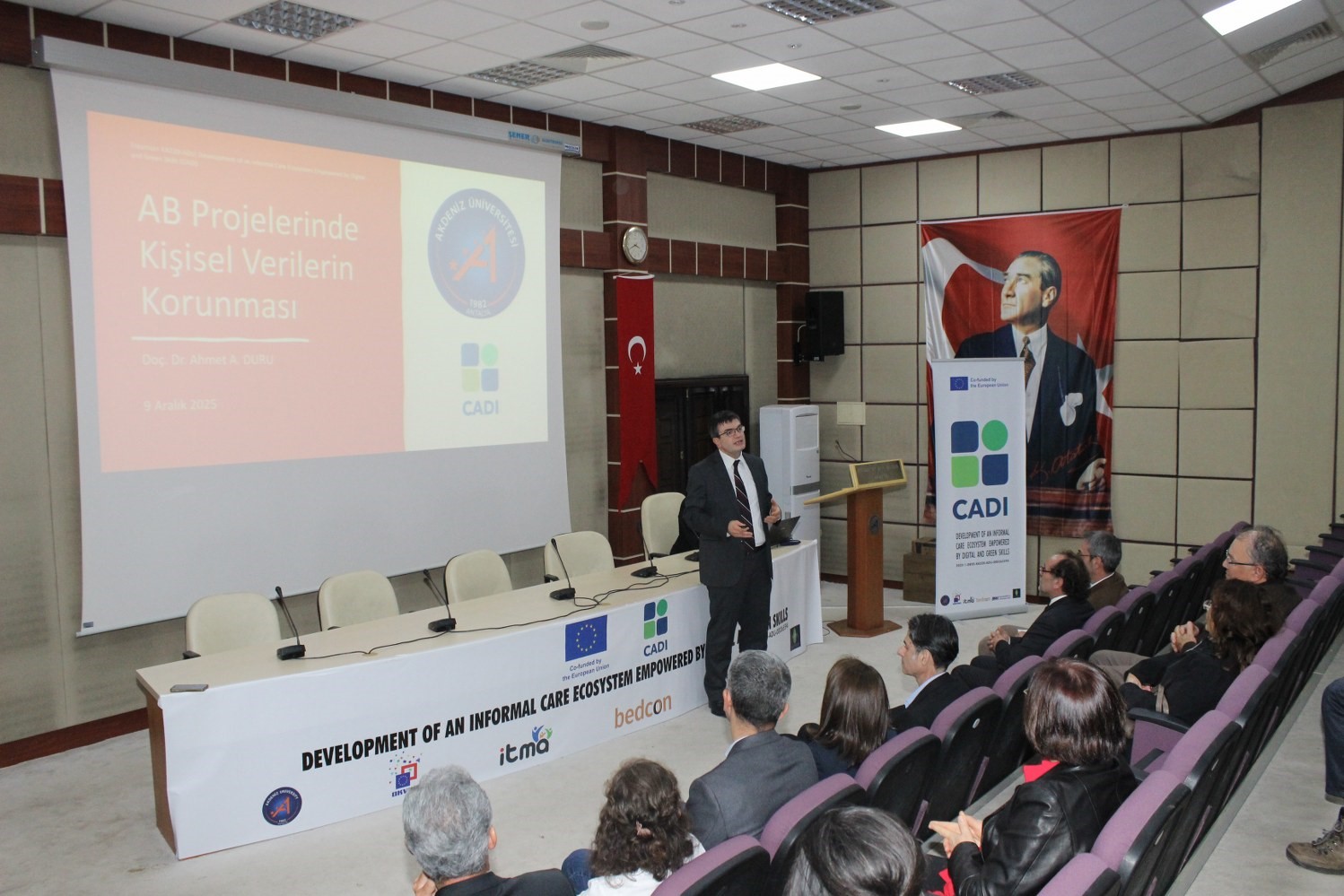 Programın son bölümünde Akdeniz Üniversitesi Genel Sekreter Yardımcısı ve AKVAM Yönetim Kurulu Üyesi Doç. Dr. Ahmet Alptekin Duru, “Avrupa Birliği Projelerinde Kişisel Verilerin Korunması” başlıklı bir sunum gerçekleştirdi. Duru, kişisel verinin tanımı ve korunmasına ilişkin kapsamlı bilgiler aktardı.