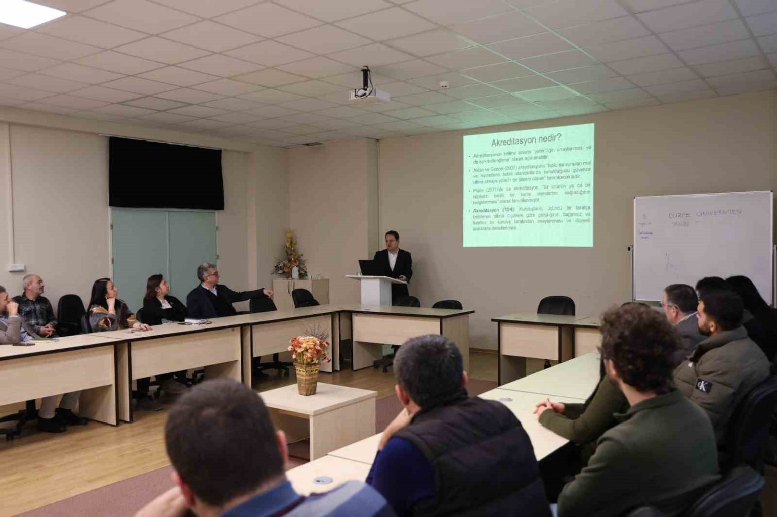 Orman Fakültesi’nin yürüttüğü akreditasyon süreci çalışmaları kapsamında davetli konuşmacı olarak yer alan Prof. Dr. Taner Okan, Mühendislik Eğitim Programları Değerlendirme ve Akreditasyon Derneği (MÜDEK) tarafından yürütülen akreditasyon sistemi hakkında kapsamlı bilgi paylaşımında bulundu.