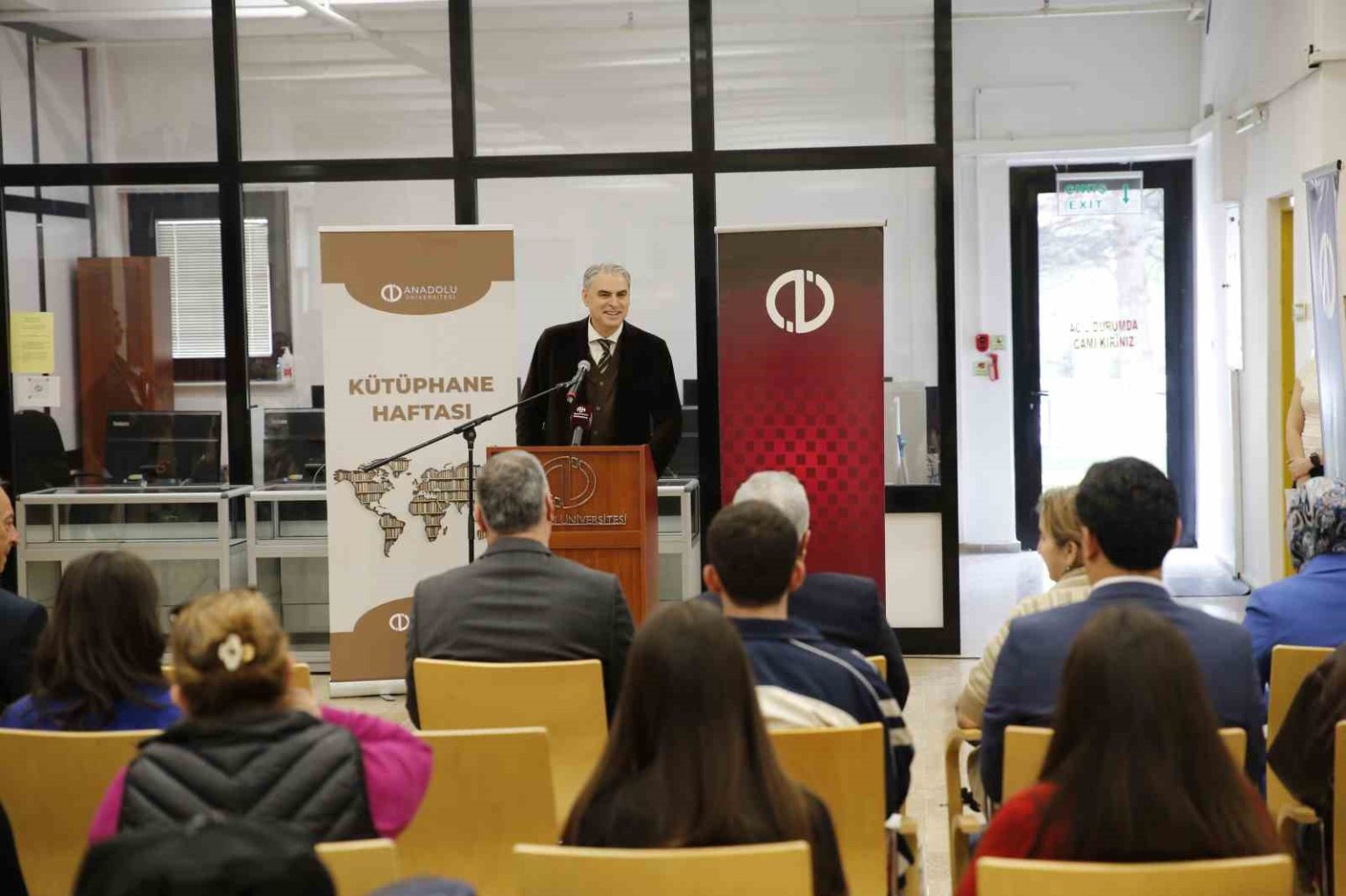 Kütüphane ve Dokümantasyon Daire Başkanı Necmettin Oğur, etkinliğin açılış konuşmasında, “Her yıl mart ayının son pazartesi günüyle birlikte başlayan hafta, ülkemizde ‘Kütüphane Haftası’ olarak kutlanıyor. Kütüphaneler, yalnızca raflar arasında dizilmiş kitapların muhafaza edildiği mekânlar değil; bilginin izini süren zihinlere yol açan, merakı besleyen ve sorgulayan bireylerin yetişmesine zemin hazırlayan canlı merkezler olarak hayatımızda yer alıyor. Üniversitemiz öğrencileri ve çalışanlarımız çok şanslı çünkü kütüphanemiz, ülkemizin, bölgemizin ve şehrimizin en önemli kütüphanelerinden biridir. Kütüphanemiz, basılı ve elektronik kaynaklar açısından zengin bir kaynağa sahiptir. Kullanıcılarımıza veri tabanları, e-dergiler ve diğer elektronik kaynaklar aracılığıyla zaman ve mekân kavramından bağımsız olarak erişim sunuluyor. Kütüphane bünyesinde yürütülen özel projelerle Osmanlıca kitaplar, yerel gazeteler, el yazması eserler ve nadir basmalar dijital ortama aktarılıyor. Bu sayede fiziksel olarak yıpranmaya açık tarihi belgeler korunurken, araştırmacılar bu nadir kaynaklara dünyanın her yerinden ulaşabiliyor. Kullanıcıların bilgi okuryazarlık becerilerini artırmak ve kütüphaneden maksimum verim almalarını sağlamak amacıyla tanıtım faaliyetlerimiz sürüyor. Kütüphaneler sadece ders kitaplarının olduğu yerler değildir. Bu nedenle size önerimiz kütüphanede ders çalışın, sınavlara hazırlanın, fakat kitapların büyülü dünyasından da uzak durmayın” dedi.