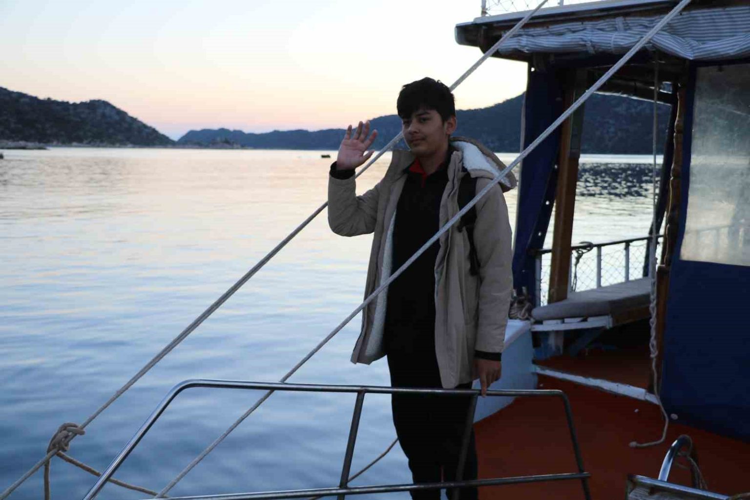 “8 yıldır okuyorum, sabah akşam 8 yıldır tekneyle okula gidip geliyorum. Denizi seviyorum, ilgi alanım. Diğer arkadaşlarımın ulaşım şekline göre daha iyi. İlk başladığımda birinci sınıftayken herkesle beraber olunca çok sıkıcı geliyordu. Bazen kavga dövüş oluyordu, şimdi tek kalınca güzel oluyor. Tekne kaptanı Mehmet abi ile konuşarak gidiyoruz, keyifli geçiyor. Sadece bu yıl tek gidiyorum, önceki yıl iki kişiydik.”