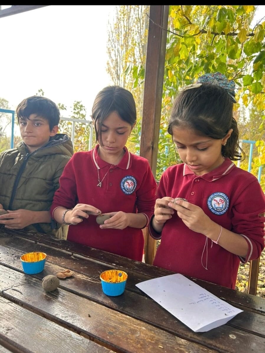Öğrencilerin değerler eğitimine katkı sağlamayı amaçlayan etkinlikler, öğretmen ve okul idarecilerinin katılımıyla düzenlendi. Etkinliklerde öğrenciler, üzerlerine ’Özgür Filistin’ yazılı kitap ayraçları hazırlayarak farkındalık çalışması yaptı. Öğrenciler ayrıca ayva, elma, limon, nar, cennet hurması, mandalina ve armut gibi çeşitli meyvelerin çekirdeklerini kullanarak tohum bank oluşturdu. Tohum bank çalışmasıyla öğrencilerin doğaya karşı sorumluluk bilinci kazanması hedeflenirken, bitki tohumlarının korunması ve gelecek nesillere aktarılmasının önemi vurgulandı. Tohum banklarının, bitki çeşitliliğini korumak amacıyla farklı bitkilere ait tohumların uygun şartlarda saklandığı ve gerektiğinde yeniden üretim için kullanıldığı alanlar olduğu öğrencilere uygulamalı olarak anlatıldı.