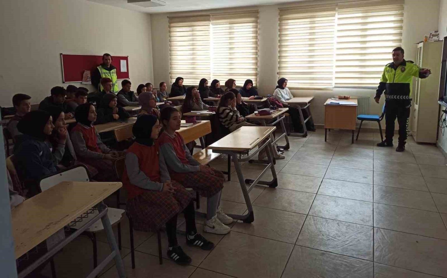 Öğrencilerin erken yaşta trafik bilinci kazanmasının amaçlandığı eğitimlerde, güvenli yaya davranışları, trafik işaretlerinin anlamları ve trafik kurallarına uymanın can güvenliği açısından taşıdığı önem üzerinde duruldu.