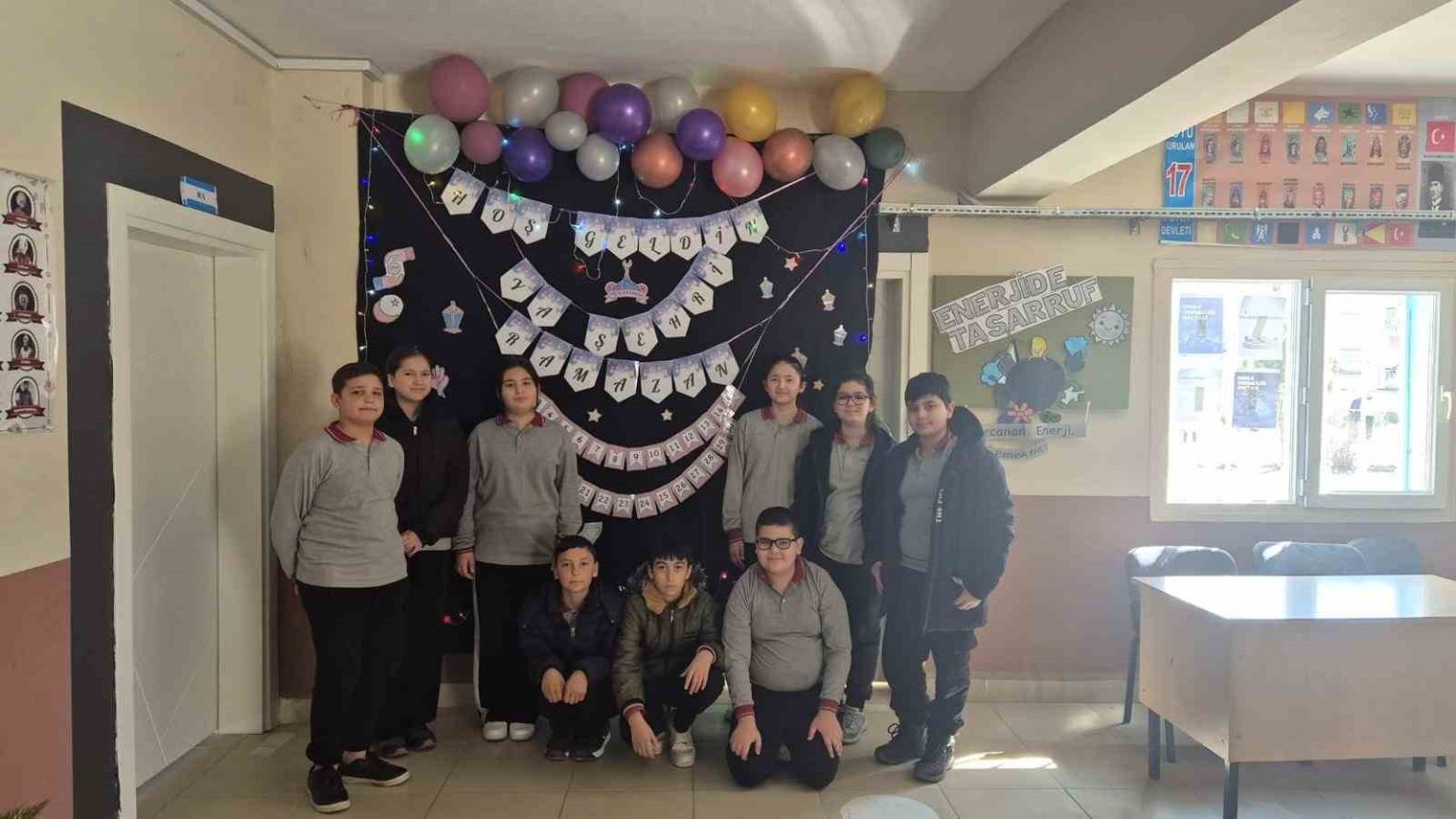 Manisa’nın Sarıgöl ilçesinde bu yıl okullarda ilk kez ramazan ayının manevi iklimine uygun etkinlik düzenlendi. Öğrenciler tarafından hazırlanan ramazan ayı etkinlik panosu okul salonunda sergilenmeye başlandı.