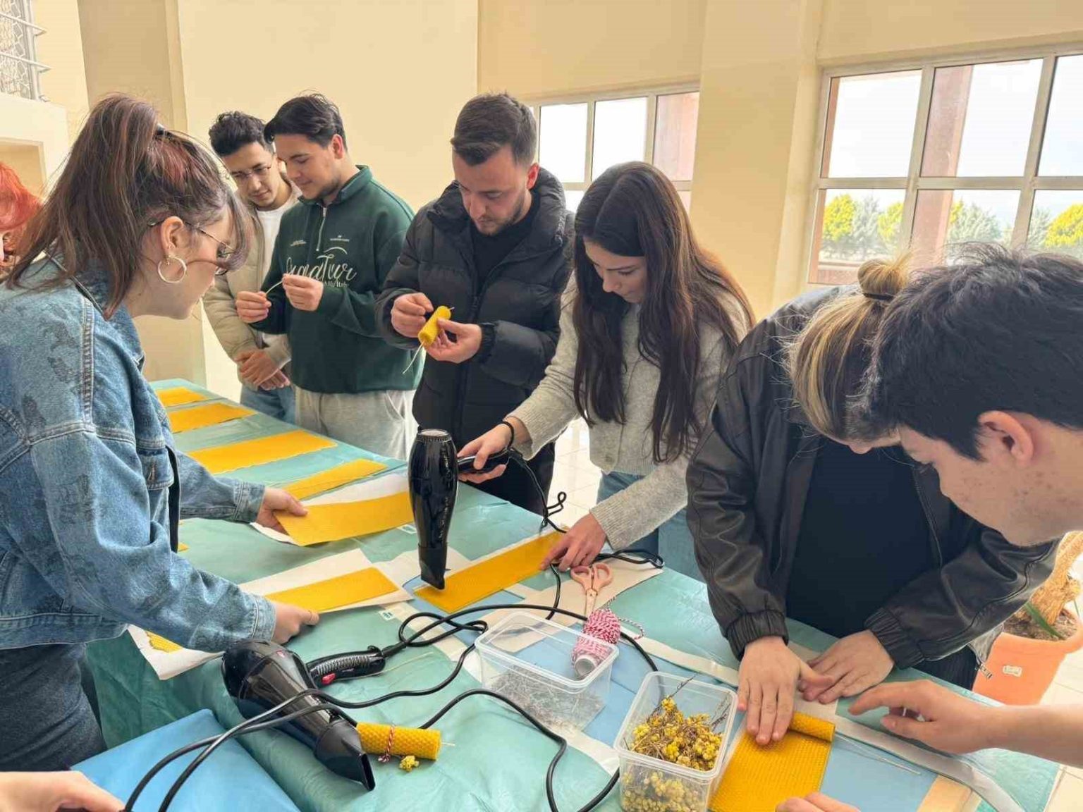 Balıkesir’in Burhaniye ilçesinde Uygulamalı Bilimler Fakültesi’nde Eko Yaşam Kulübü tarafından düzenlenen bal mumu yapımı etkinliği öğrencilerin yoğun katılımıyla gerçekleştirildi. Doğal ve sürdürülebilir üretim anlayışına dikkat çekmek amacıyla gerçekleştirilen etkinlikte katılımcılar, bal mumunun özellikleri ve kullanım alanları hakkında bilgi edinme fırsatı buldu.