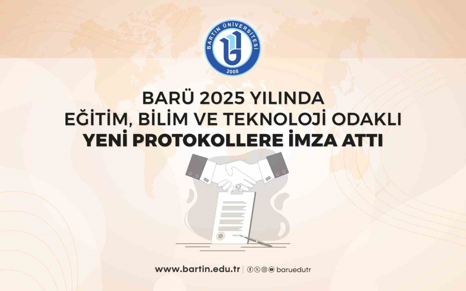 Bartın Üniversitesi (BARÜ) eğitim, bilim, araştırma ve teknoloji alanlarında iş birliği ağını güçlendirme hedefiyle 2025 yılında birçok yeni protokole imza attı. Bu doğrultuda BARÜ, Türkiye’deki iş birliklerinin yanı sıra dünyanın farklı ülkelerinden kurum ve kuruluşlarla önemli protokoller gerçekleştirdi.
