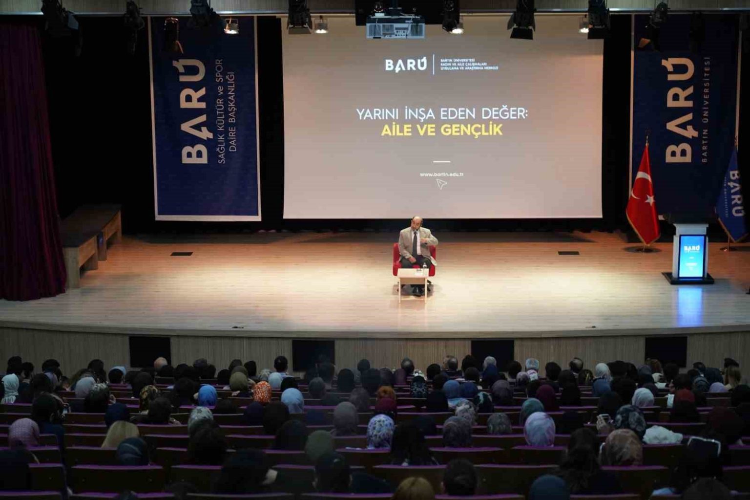 Bartın Üniversitesi (BARÜ) Kadın ve Aile Çalışmaları Uygulama ve Araştırma Merkezi tarafından aile ile gençlik arasındaki bağın geleceği nasıl şekillendirdiğini ele almak amacıyla anlamlı bir konferans düzenlendi. Kutlubey Yerleşkesi İİBF-Eğitim Fakültesi Konferans Salonu’nda düzenlenen “Yarını İnşa Eden Değer: Aile ve Gençlik” başlıklı programda şair ve yazar kimliğiyle tanınan Van Yüzüncü Yıl Üniversitesi Dr. Öğr. Üyesi Ömer Demirbağ konuşmacı olarak yer aldı.