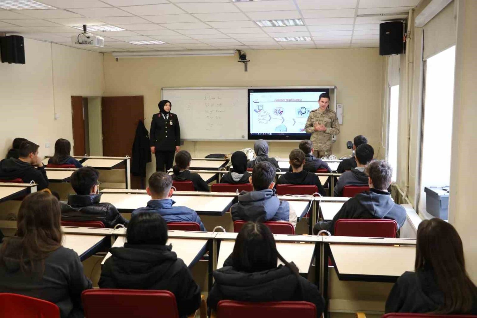 Tanıtım faaliyetleri çerçevesinde ayrıca Jandarma Astsubay Meslek Yüksekokulu (JAMYO) hakkında kapsamlı bilgiler aktarıldı. JAMYO’ya başvuru şartları, öğrenci temin süreci ve eğitim yapısı hakkında öğrencilere sunum yapıldı.