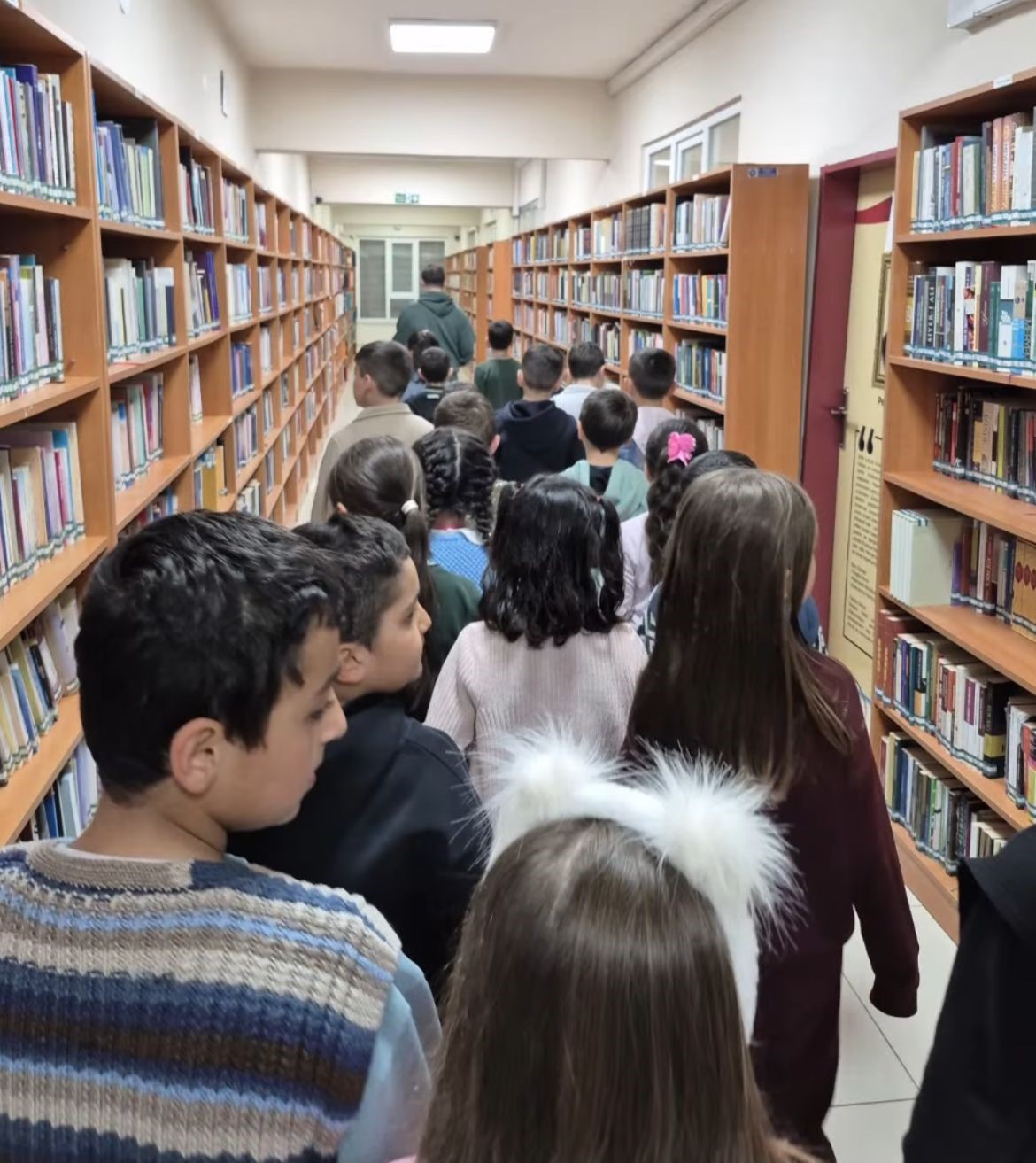 Ziyarette öğrencilere okuma alışkanlığının önemi anlatıldı, kütüphane kültürüne ilişkin bilgi verildi.