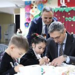 Aile katılımını güçlendirmeyi amaçlayan etkinlikte, veliler çocuklarıyla birlikte sanatsal faaliyetlere katılırken okul-aile iş birliğinin önemine dikkat çekildi.