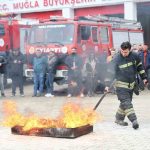 Muğla Büyükşehir Belediyesi İtfaiye Grup Amirliği ekiplerinin sunumuyla başlayan programda, teorik bilgilendirmelerin ardından personele yangın söndürme teknikleri uygulamalı olarak gösterildi.