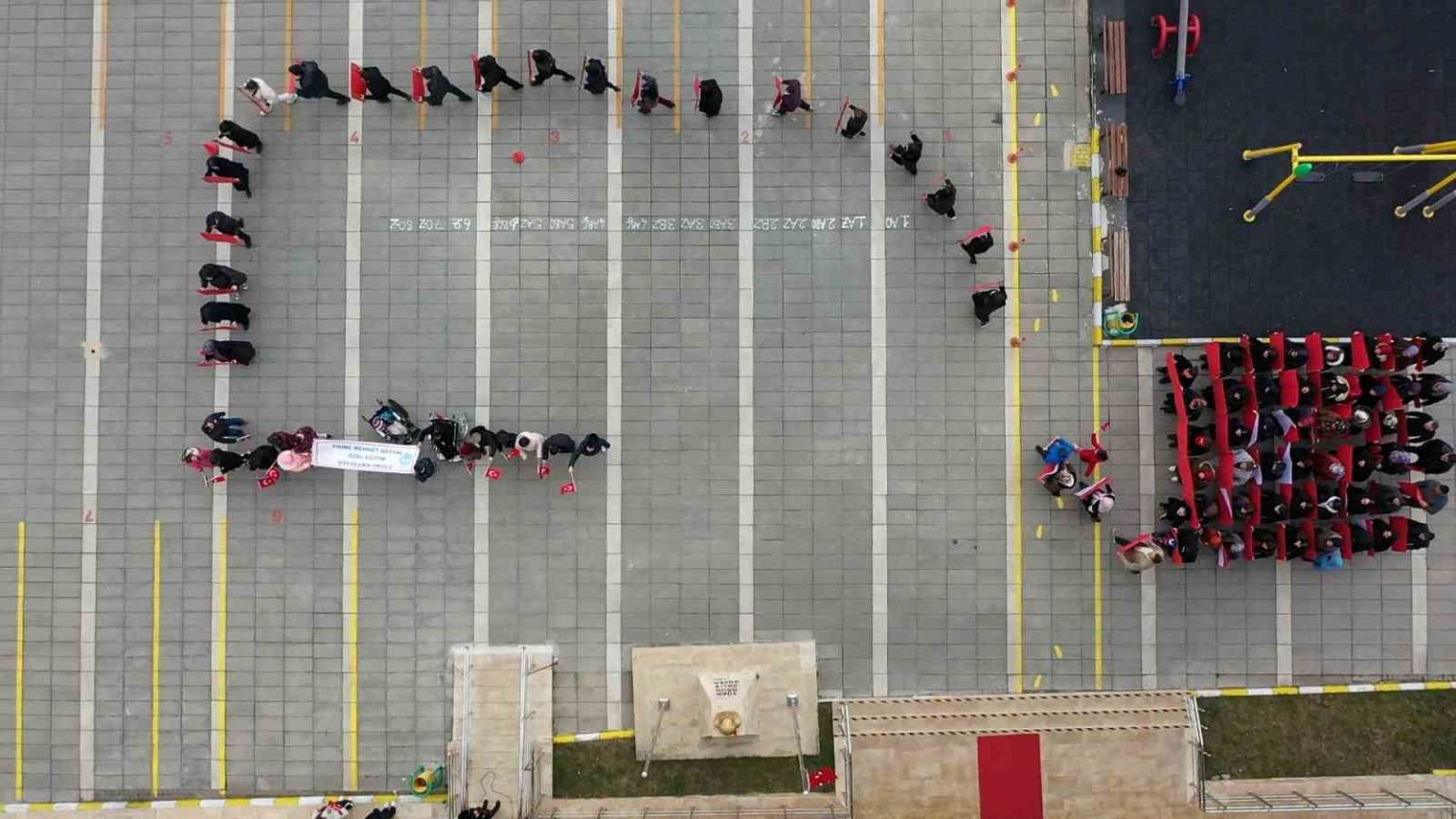 Bolu’da özel eğitim öğrencileri, öğretmenleri ve velileriyle birlikte ‘Bayrak sevgisi’ temalı Türk bayrağı koreografisi hazırladı.