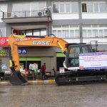 Türkiye Belediyeler Birliği tarafından hibe edilen 22 tonluk paletli ekskavatör Bozdoğan’a getirildi, Taksi Meydanı’nda sergilendi.