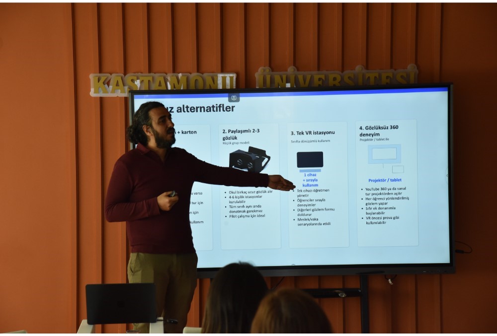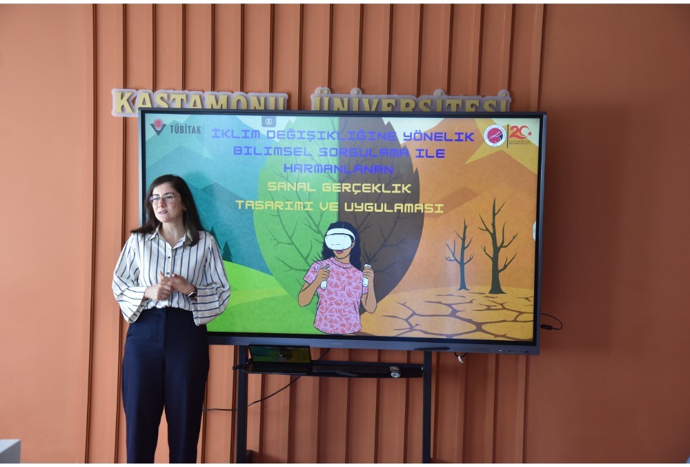 Kastamonu Üniversitesi Eğitim Fakültesi öğretim üyelerinden Dr. Öğretim Üyesi Seçil Tısoğlu Kaya’nın yürütücülüğünü üstlendiği ve TÜBİTAK 3501 Kariyer Geliştirme Programı kapsamında desteklenen “İklim Değişikliğine Yönelik Bilimsel Sorgulama ile Harmanlanan Sanal Gerçeklik Ortamı Tasarımı ve Uygulaması” başlıklı projenin kapanış toplantısı, Kastamonu Üniversitesi Hoca Ahmet Yesevi Kültür Merkezi-Erasmus Karşılama Merkezi’nde gerçekleştirildi.