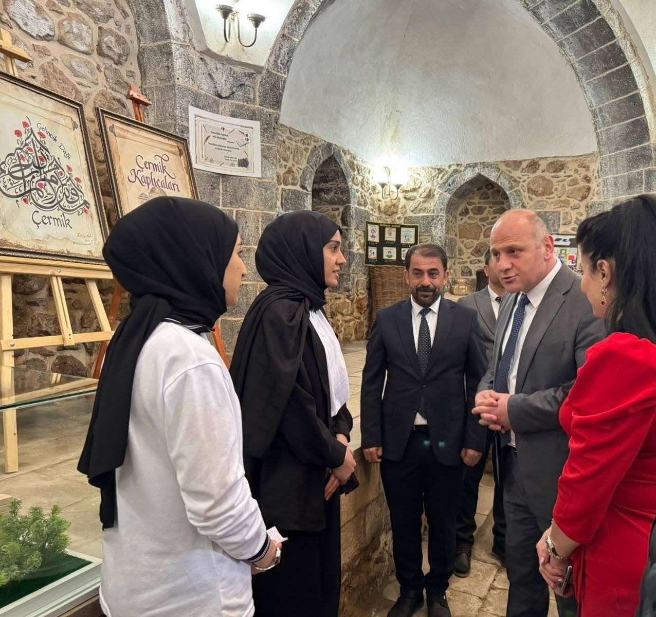 Çermik Belediyesi Kültür Evinde yapılan etkinlikte liselerin hazırladığı ’Köklerden Geleceğe Çermik’ sergisinin açılışı gerçekleştirildi. Türkiye yüzyılı maarif modeli vizyonuyla gençlerin gerçekleştirdiği etkinlikte, dilin zenginlikleri ve atasözlerinin derinlikleri sanata dönüştürüldü. Kültürel mirasının yaşatılması açısından önemli olan etkinlikte öğrencilerin hazırladıkları ürünler sergilendi. Bugün de devam edecek olan etkinliğe ilçe protokolü, STK temsilcileri ve vatandaşlar davet edildi.