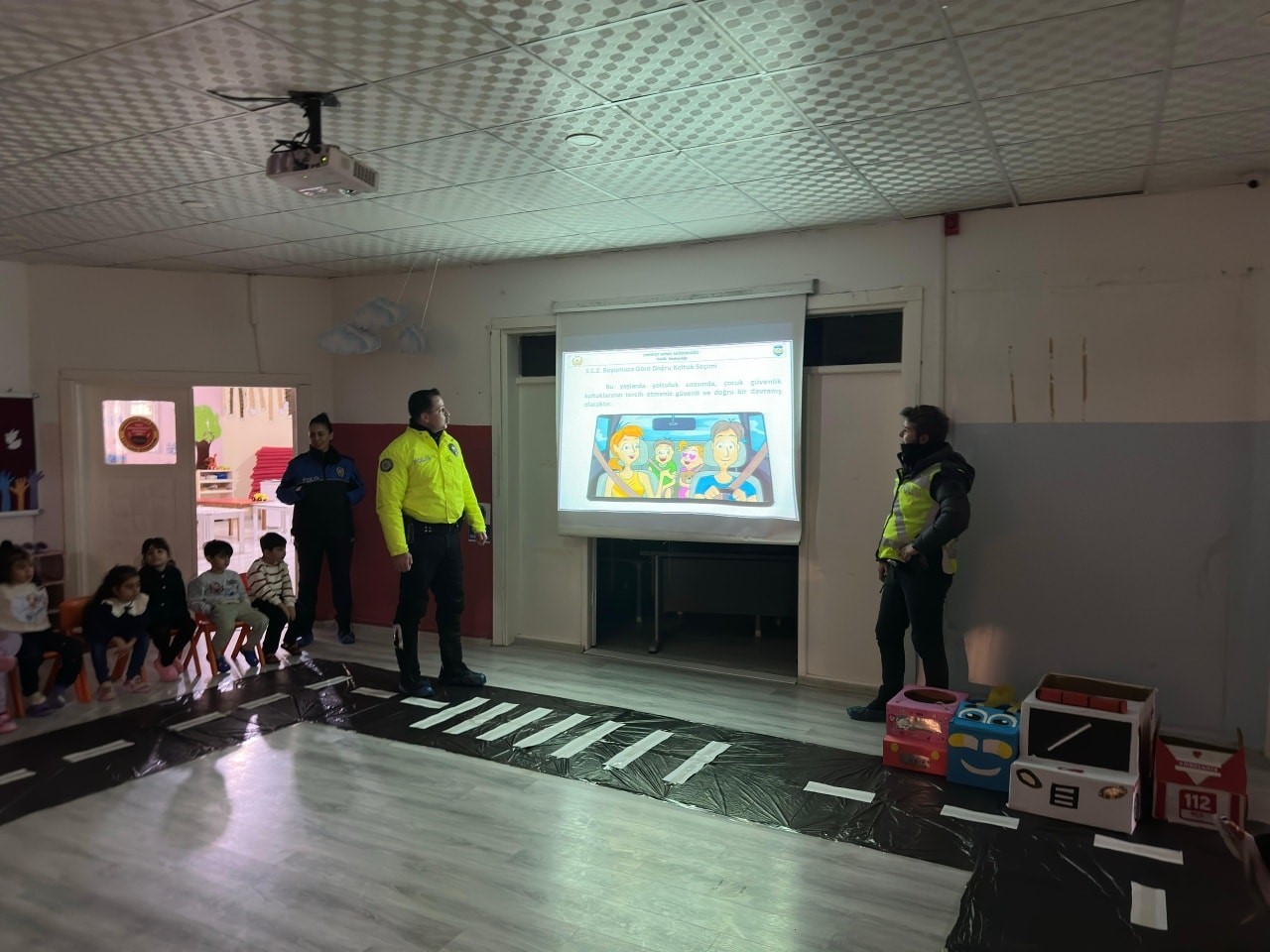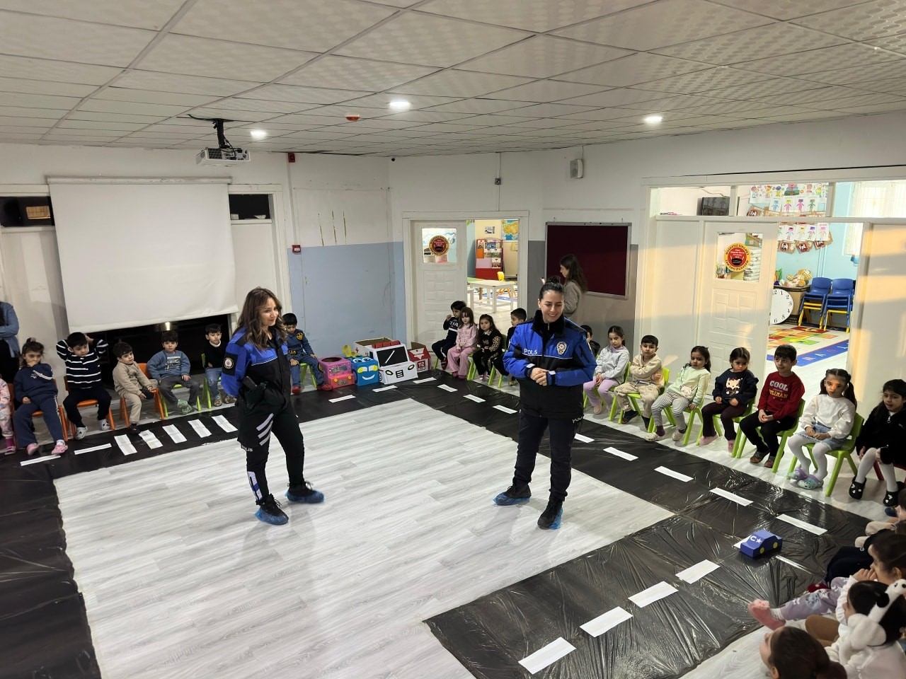 Toplum Destekli Polislik Büro Amirliği ile Trafik Tescil ve Denetleme Büro Amirliği ekipleri, Zübeyde Hanım Anaokulunu ziyaret ederek polislik mesleği, genel güvenlik kuralları ve trafik bilinci konularında öğrencileri bilgilendirdi. Etkinlik kapsamında öğrencilerle eğitici trafik uygulaması yapılırken, temel trafik işaretleri ve güvenli yaya davranışları uygulamalı olarak anlatıldı. Polis ekipleri, minik öğrencilerle birebir sohbet ederek onların merak ettiği soruları yanıtladı ve güvenli yaşam farkındalığını pekiştirdi.