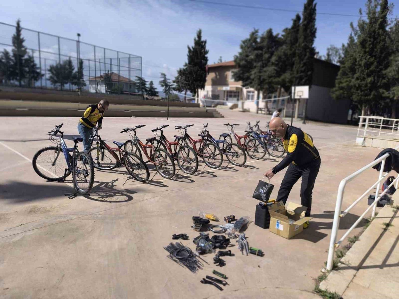 Denizli Bisikletliler Derneği üyeleri, “Mahalle Okullarındayız” projesi kapsamında Çal Sazak Ortaokulu’ndaki öğrencilerin atıl durumdaki bisikletlerini tamir ederek yeniden kullanıma kazandırdı.