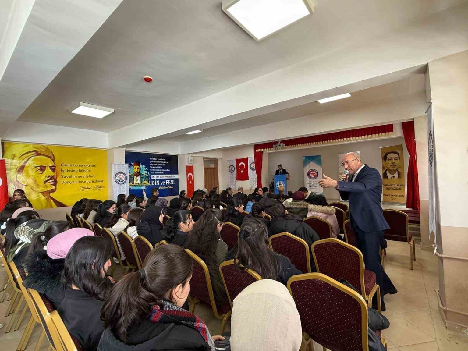 Öğrencilerin okuma alışkanlıklarını geliştirmeyi ve kültürel değerleri yeni nesillere aktarmayı hedefleyen proje, 9 yıldır aralıksız olarak uygulanıyor. Bu kapsamda düzenlenen programlar, Diyadin Anadolu İmam Hatip Lisesi Konferans Salonu ile Taşlıçay Anadolu Lisesi Konferans Salonu’nda gerçekleştirildi. Etkinliklere proje koordinatörü öğretmenler ve öğrenciler katıldı.