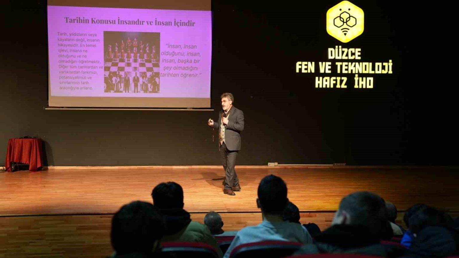 DÜZCE (İHA) – Düzce Fen ve Teknoloji Lisesi’nde, Hikmet Projesi kapsamında anlamlı bir konferans programı düzenlendi. Programa, Sakarya Üniversitesi Tarih Bölümü Öğretim Üyesi Prof. Dr. Necmettin Alkan konuşmacı olarak katıldı.