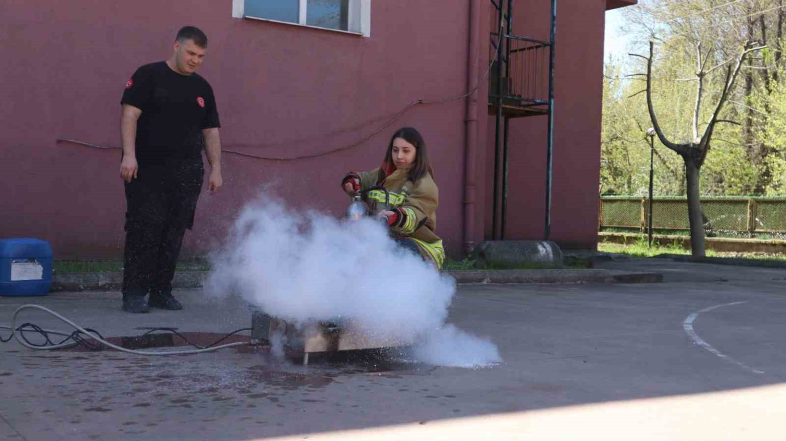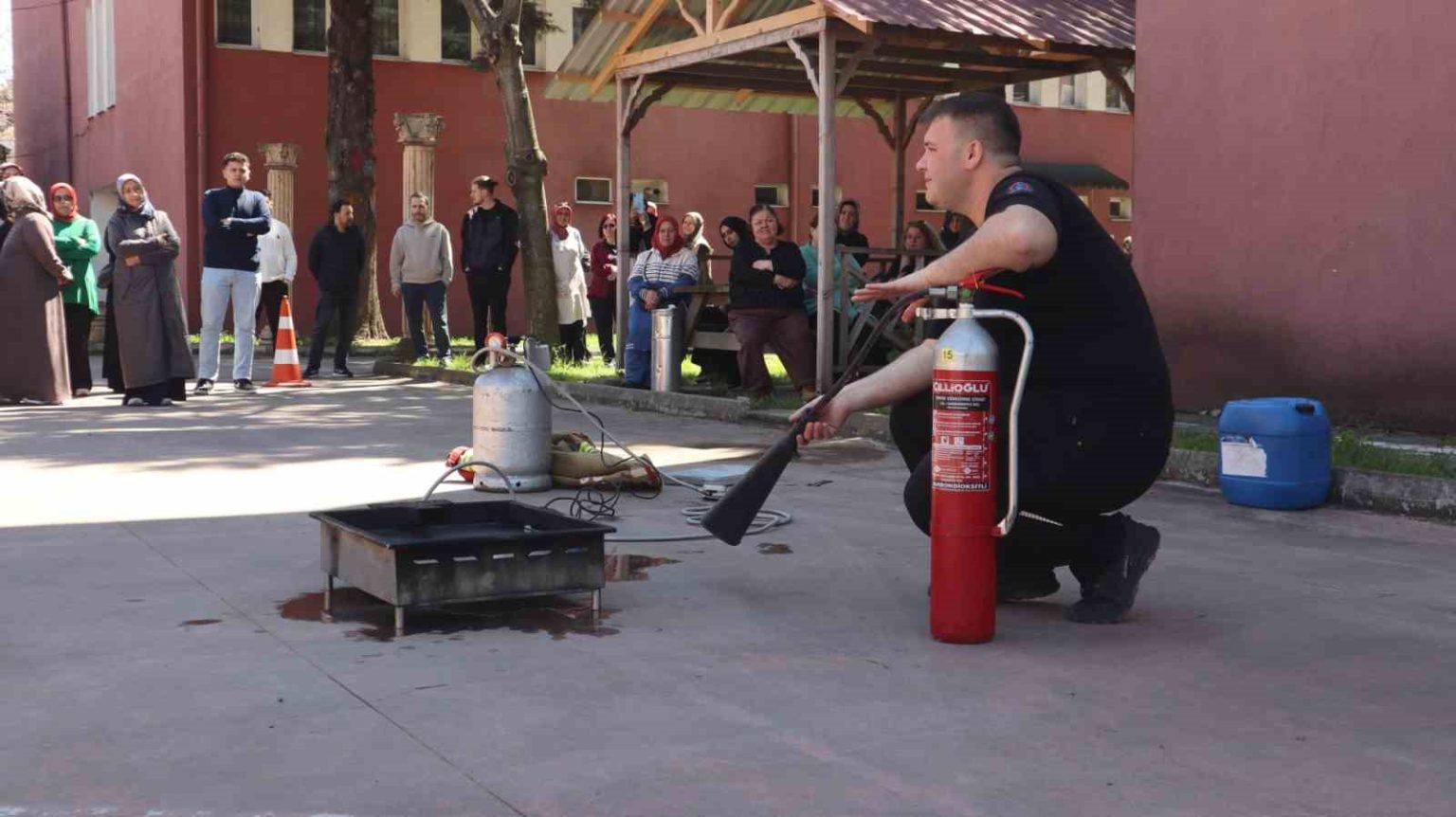 Düzce Belediyesi İtfaiye Müdürlüğü, acil durum ve yangına müdahale eğitimlerini sürdürüyor. Okullar, kurum ve kuruluşlar başta olmak üzere her kesimden vatandaşa eğitimler düzenleyen teşkilat bu kez Düzce El Sanatları Eğitim Merkezi kursiyerleri ile bir araya geldi.