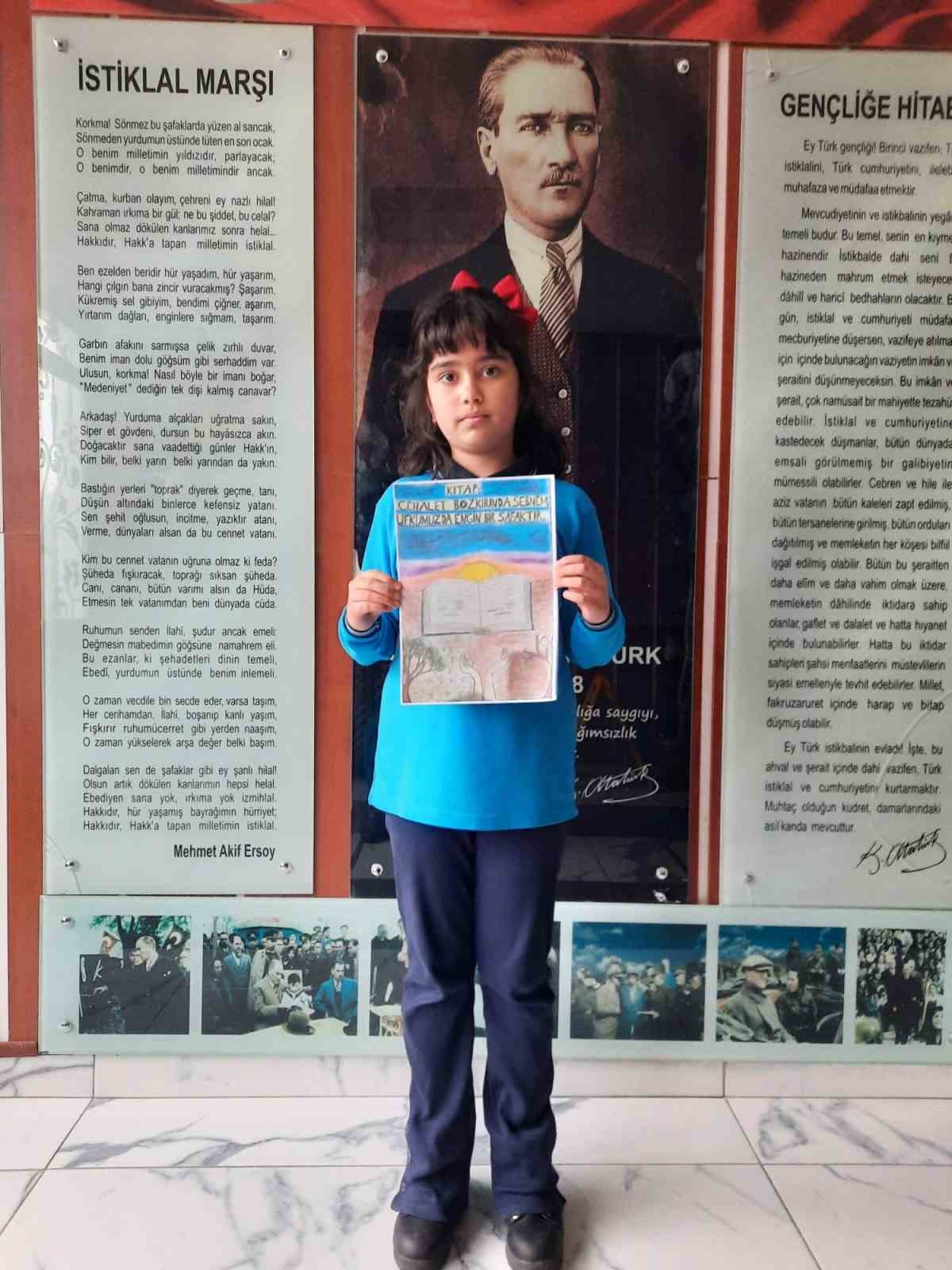 Emirdağ Fatih İlkokulu, akademik ve sosyal başarılarına bir yenisini daha ekledi ve Emirdağ’ın gururu oldu. Milli Eğitim Bakanlığı 2025/2026 Eğitim Öğretim Yılı ‘Dilimizin Zenginlikleri Projesi’ kapsamında Afyonkarahisar İl Millî Eğitim Müdürlüğü tarafından düzenlenen ‘İlkokullar Arası En İyi Cümle / Afiş Yarışması’nda, Emirdağ Fatih İlkokulu 4/C sınıfı öğrencisi İdil Mola, Afyonkarahisar İl Birincisi olarak büyük bir başarıya imza attı. Bu önemli başarıyla, Fatih İlkokulu; hem okul hem de ilçe adına adını bir kez daha zirveye yazdırdı. ‘Hiçbir başarı tesadüf değildir’