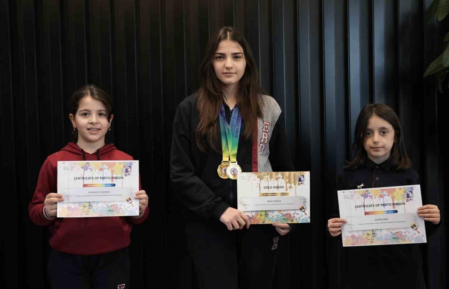 Yara Kabani, Dijital Art Çizim kategorisinde altın madalya, Comics kategorisinde ise bir kez daha altın madalya kazanarak turnuvanın en dikkat çeken isimlerinden biri oldu. Cemre Su Çağlar, Acrylic Paint kategorisinde gümüş madalya elde ederek uluslararası jüri tarafından takdir edildi. Muhammed Mustafa Balcı ve Zehra Boz, mansiyon ödülü ile başarılarını taçlandırırken, Hifanur Yıldırım da mansiyon alan öğrenciler arasında yer aldı. Evla Gençoğlu onur belgesi, Simay Gökçe Kılıç ve Zeynep Eda Elbeyli ise katılım belgeleri ile uluslararası sanat deneyimlerini belgelendirdi.