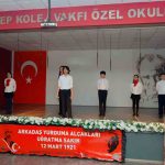Gaziantep Kolej Vakfı Özel Okulları Konferans Salonunda düzenlenen ve GKV Özel Ortaokulu öğrencileri tarafından hazırlanan “12 Mart İstiklal Marşı’nın Kabulü ve Mehmet Akif Ersoy’u Anma” törenine, Gaziantep Kolej Vakfı Mütevelli ve Yönetim Kurulu Başkanı Esra İbanoğlu, GKV Mütevelli ve Yönetim Kurulu Üyeleri, Gaziantep Kolej Vakfı Özel Okulları Genel Müdürü Fevzi Gürsel, idareci, öğretmen ve öğrencilerin yanı sıra çok sayıda davetli katıldı.