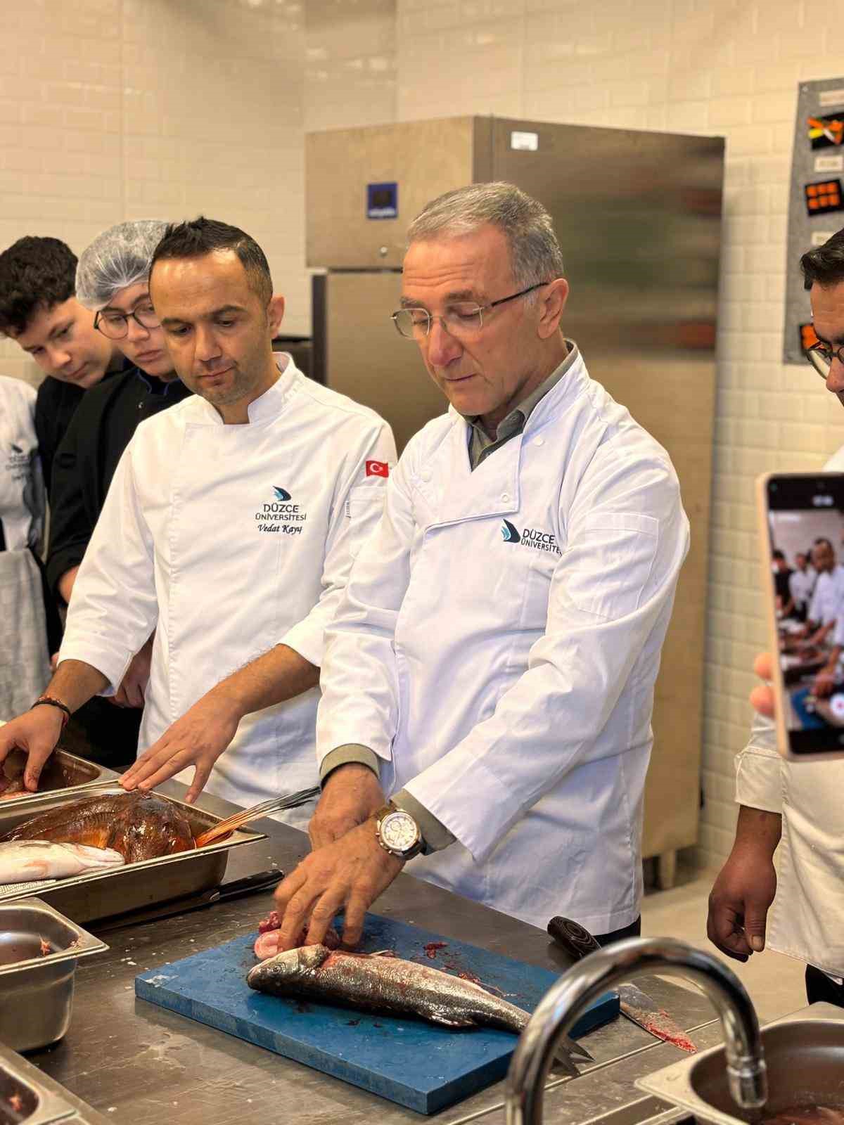 Düzce Üniversitesi Turizm Fakültesi Gastronomi ve Mutfak Sanatları Bölümü tarafından Mutfak Uygulamaları dersi kapsamında düzenlenen, “Balık ve Deniz Ürünleri Uygulaması” workshop etkinliği Turizm Fakültesi Gastronomi Uygulama Mutfağı’nda gerçekleştirildi.