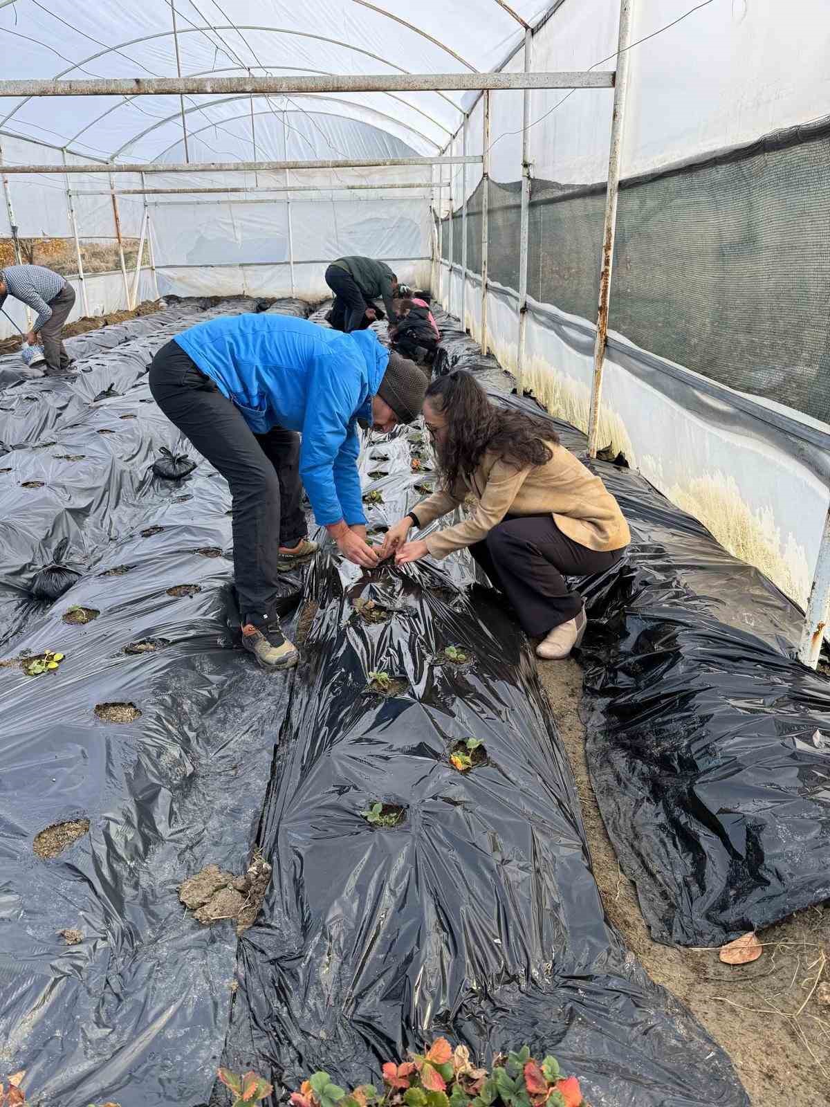 Manisa’nın Gördes ilçesine bağlı Çiğiller İlköğretim Okulu bahçesinde, “Sevgimizi Seramızda Büyütüyoruz” projesi kapsamında 150 metrekarelik alanda kurulan serada çilek dikimi gerçekleştirildi.
