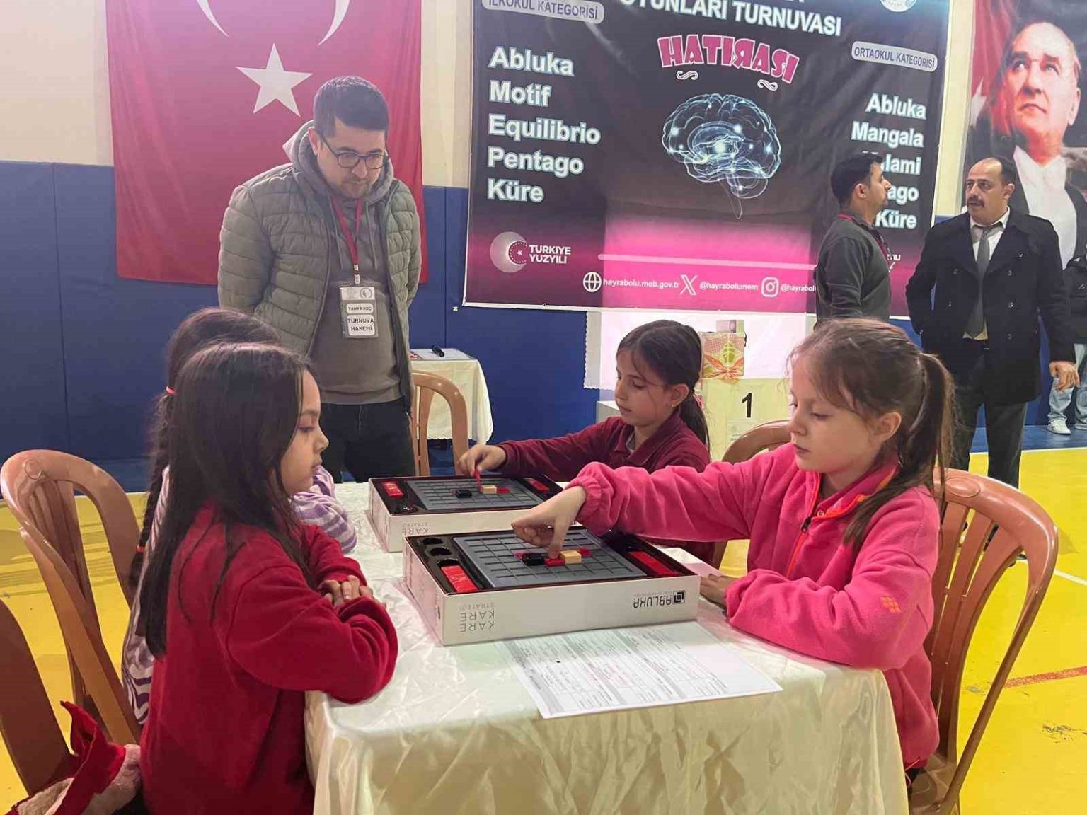 Hasan Yılmaz Kurt Ortaokulu Kapalı Spor Salonu’nda gerçekleştirilen turnuvaya katılan 168 öğrenci, Abluka, Motif, Aquilibrio, Pentago, Küre, Mangala ve Kulami gibi 7 farklı oyunda kıyasıya mücadele etti.