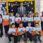 Kütahya’nın Hisarcık ilçesinde bulunan Atatürk İlkokulu’nda İstiklal Marşı’nın tamamını hatasız ve ezbere okuyan 2-A sınıfı öğrencileri, öğretmenleri İbrahim Güleç tarafından ödüllendirildi.