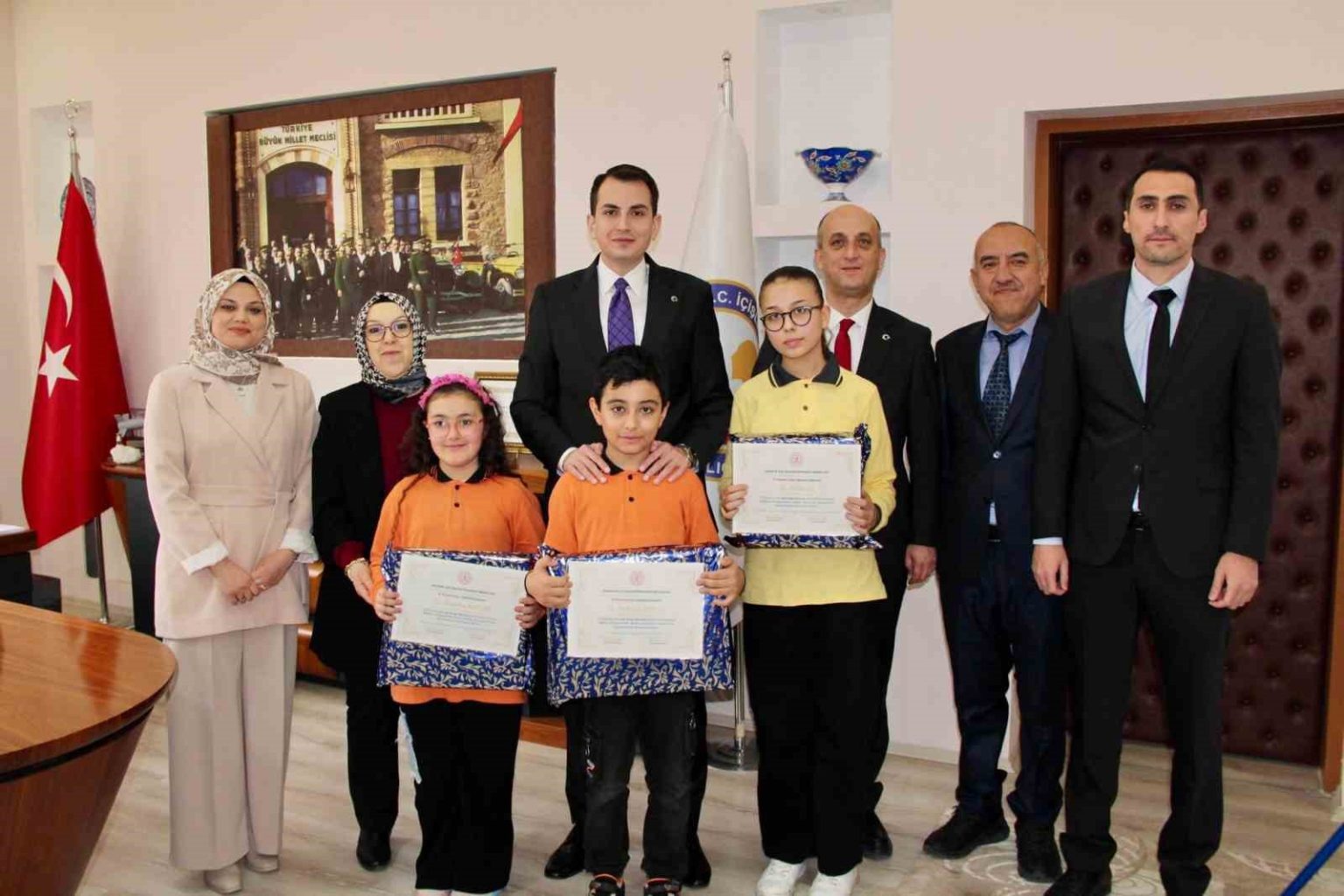 Başarılı öğrencileri makamında kabul eden Kaymakam Erkan Atam, öğrencilere başarı belgesi ve çeşitli ödüller takdim ederek başarılarının devamını diledi.