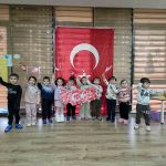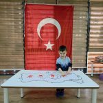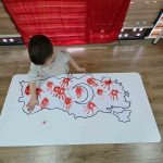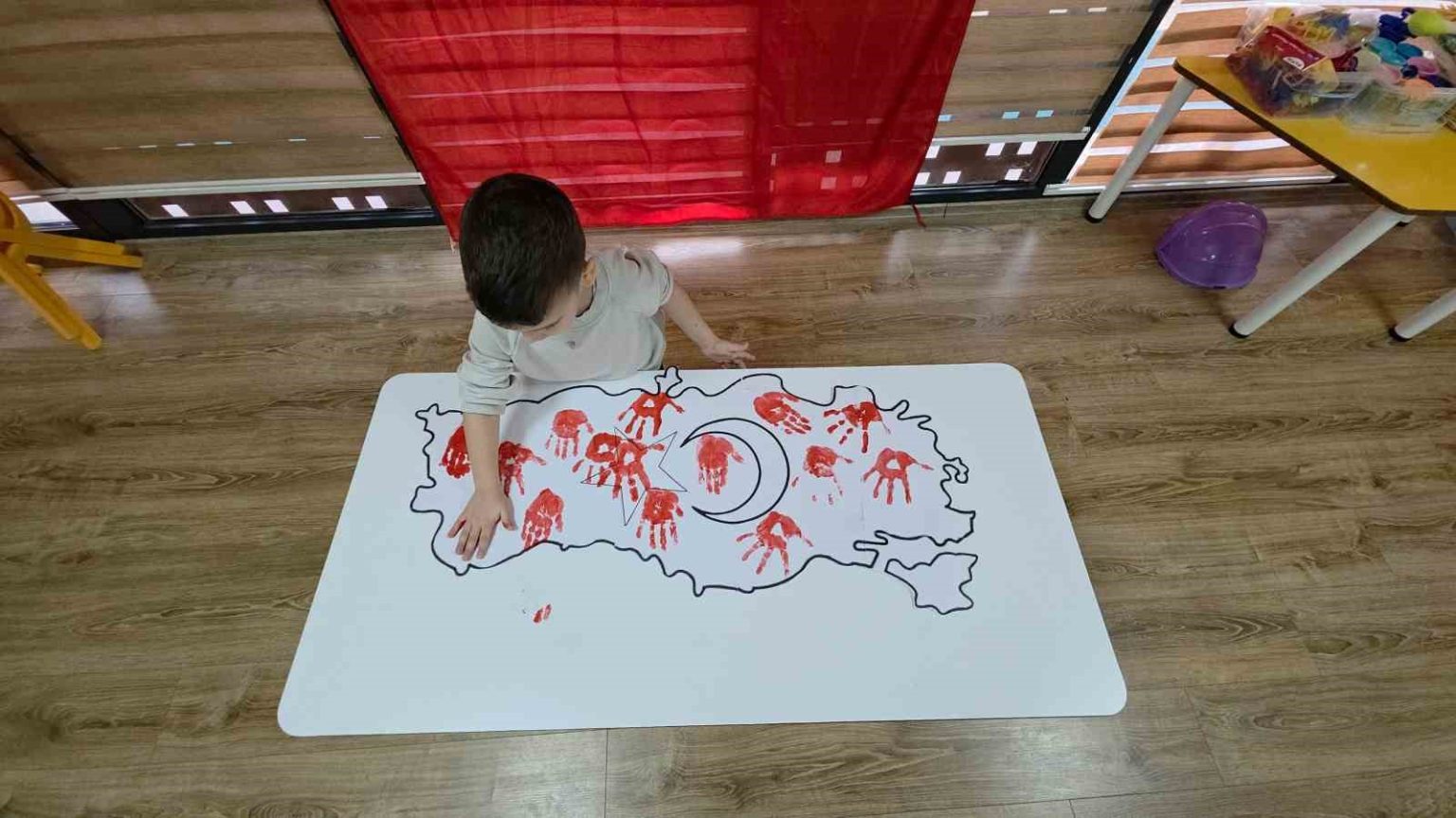 3-4 yaş sınıfında ise minik öğrenciler Türkiye haritası üzerinde el baskısı yaparak Türk bayrağını oluşturdular. Minikler, bayrağı oluşturduktan sonra coşkuyla Türk bayrağı sallayarak etkinliklerini tamamladılar.