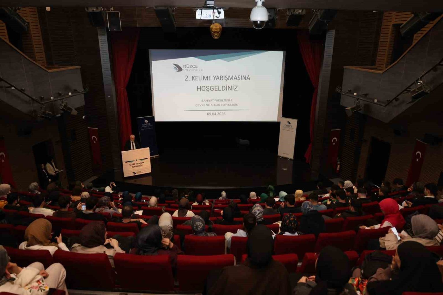 Düzce Üniversitesi İlahiyat Fakültesi, Kariyer Geliştirme ve Mezun İzleme Uygulama ve Araştırma Merkezi ile Çevre ve Ahlak Topluluğu iş birliğinde düzenlenen “II. Arapça Kelime Yarışması”, İstiklal Konferans Salonu’nda öğrencilerin yoğun katılımıyla gerçekleştirildi.