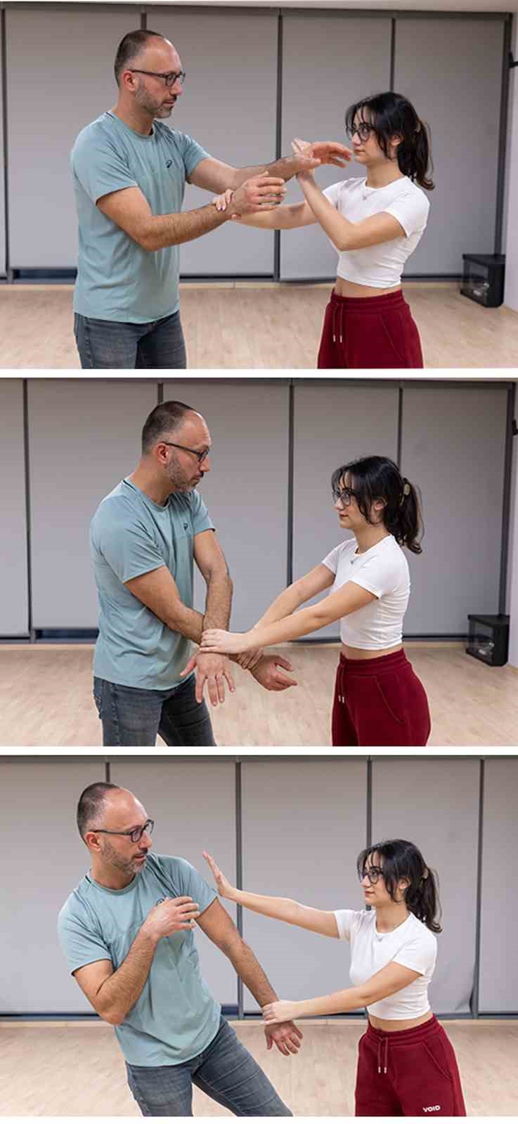 Eğitmen Barış Kural, “Burada uyguladığımız öz savunmanın başlangıç noktası. Öncelikle adımlar, duruş ve beden dili nasıl olması gerektiğini anlattık. Saldırı anında kaçınmak için neler yapabileceğimizi uygulamalı gördük, temasın sağlandığı noktaları da simüle eden teknikleri de gösterdik. Bize yönelen birine karşı merkezde kalmak için hareket modellerini çalıştık. Öz savunma becerisi bireyler için İsviçre çakısı görevi görüyor. Bu aynı zamanda zihinsel bir yöntem. Bu beceriyi kazanırken aslında kendinizi, bedeninizi daha iyi tanırsınız” dedi.