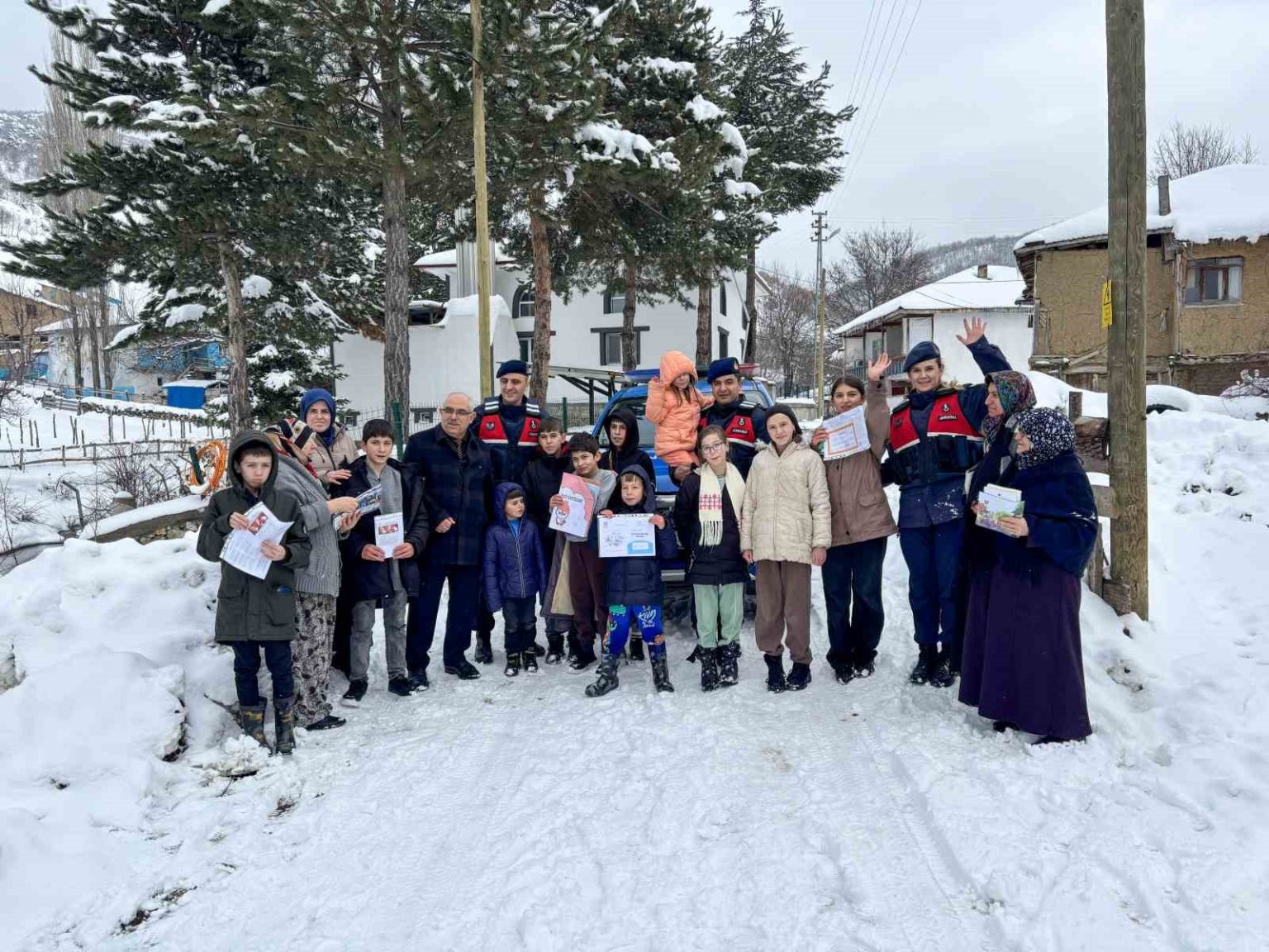 Tokat’ın Pazar ilçesi Ovacık köyünde karla kapanan yol nedeniyle okula gidemeyen 9 öğrencinin karneleri, jandarma ekiplerince evlerine ulaştırıldı.