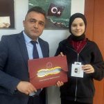 Öğrenciye ödül ve belgesi, Ereğli Eğitim Fakültesi öğretim üyesi Bayram Gökbulut tarafından takdim edildi.