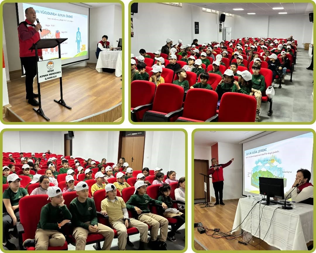 Aydın’ın Köşk ilçesinde ilkokul öğrencilerine verilen eğitimde, suyun verimli kullanımı ve kaynakların korunması eğlenceli bir dille anlatıldı.