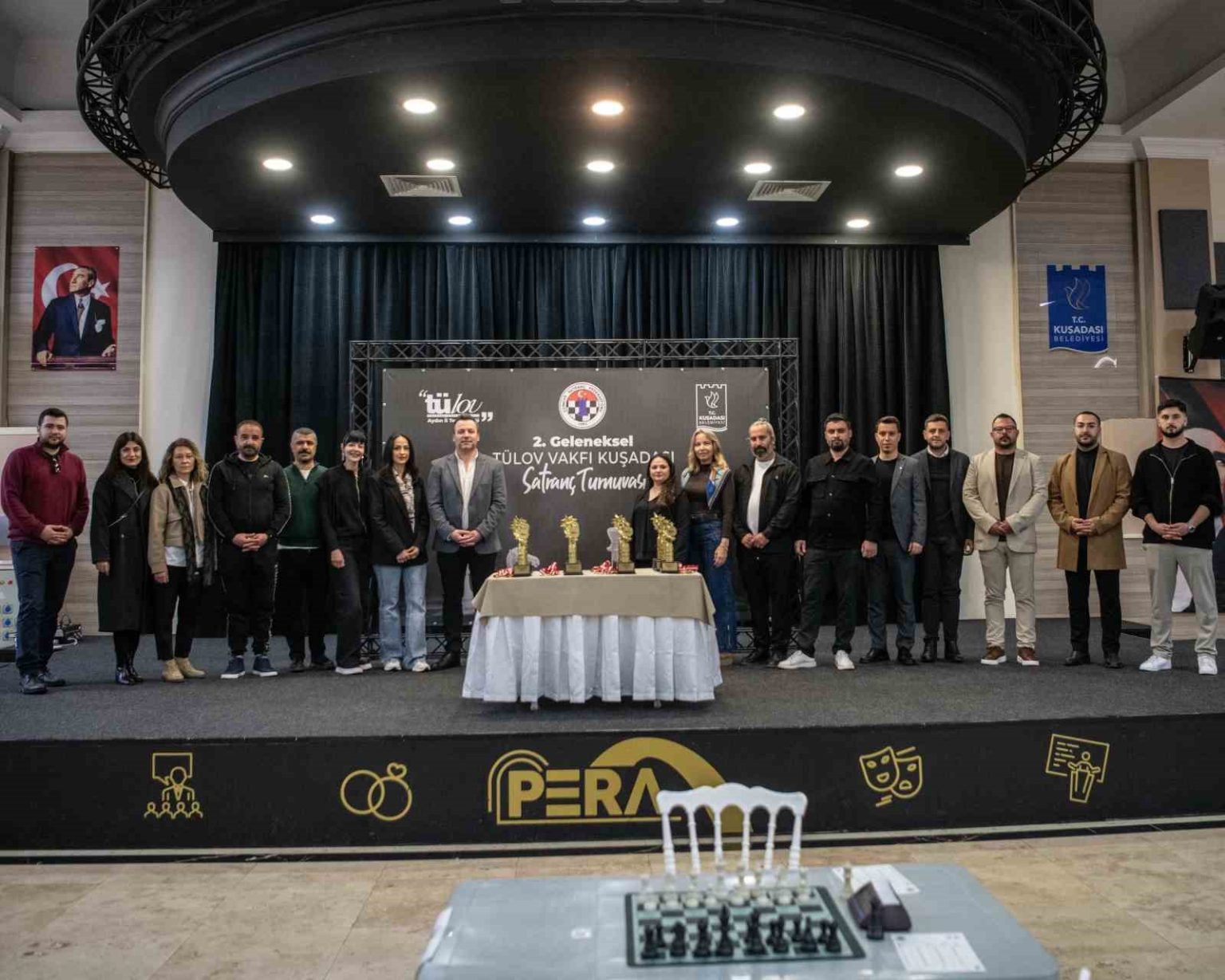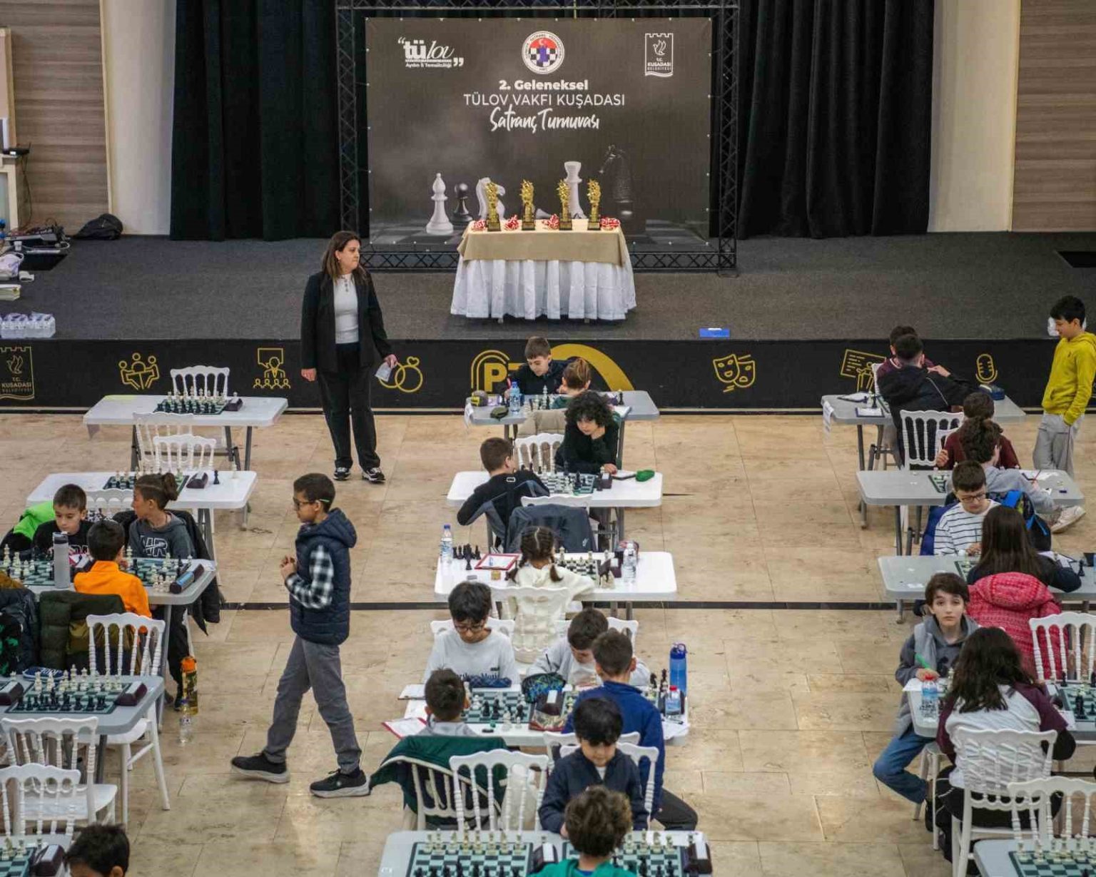 Pera Kültür, Düğün ve Organizasyon Merkezi’nde başlayan 2’nci Geleneksel TÜLOV Vakfı Kuşadası Satranç Turnuvası’nın açılış hamlesini Kuşadası Belediye Başkan Vekili Tahsin Demirtaş yaptı. 8, 10, 14 yaş altı ve açık kategorilerinde düzenlenen turnuvaya 110 sporcu katıldı. 31 bin 500 lira para ödülün dağıtılacağı turnuvada sporcular, 2 gün boyunca rakiplerini mat edip, kupa ve madalya kazanmak için mücadele edecek. Strateji ve zekanın ön planda olduğu turnuvada dereceye giren sporculara ödülleri 29 Mart Pazar günü gerçekleştirilecek törenle verilecek.