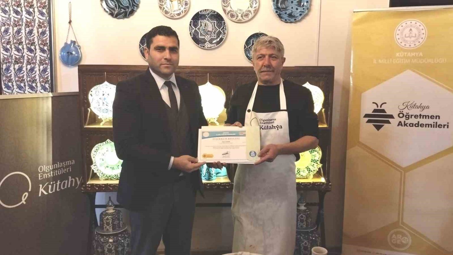 Programın sonunda İl Milli Eğitim Müdür Yardımcısı Mustafa Topuz tarafından çini sanatçısı Ali Kaya’ya hediye ve teşekkür belgesi takdim edildi. Etkinlik, katılımcı öğretmenlere katılım belgelerinin verilmesiyle sona erdi.