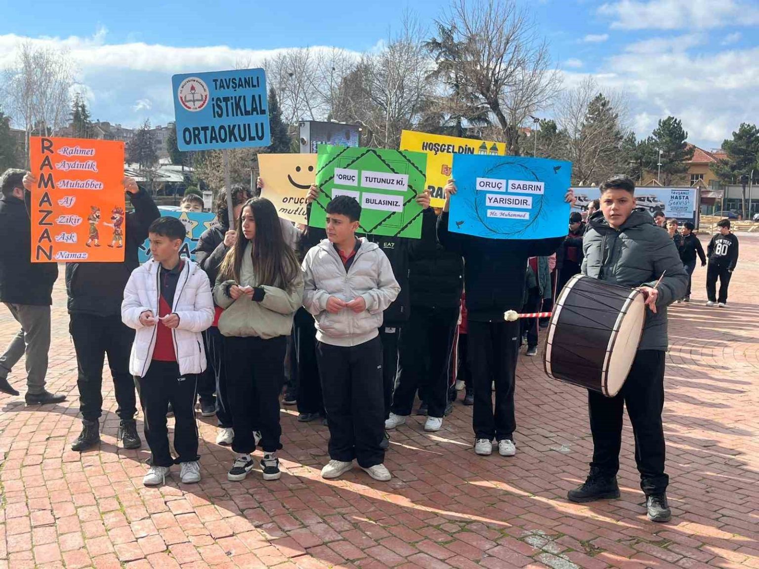 Kütahya’nın Tavşanlı ilçesinde, Türkiye Yüzyılı Maarif Modeli kapsamında düzenlenen etkinlikte ortaokul öğrencileri, Ramazan ayının manevi atmosferini sokaklara taşıdı.