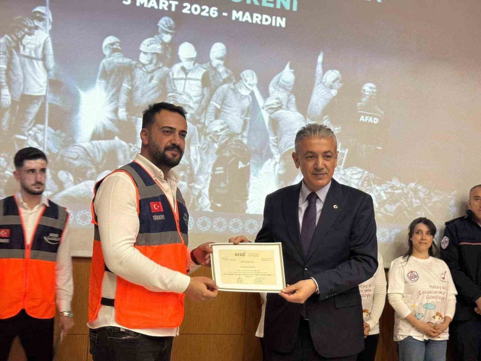 Mardin Büyükşehir Belediyesine bağlı Sanat Akademisi’nde düzenlenen törene Mardin Valisi ve Büyükşehir Belediyesi Başkan Vekili Tuncay Akkoyun, Büyükşehir Belediyesi Genel Sekreteri Kemalettin Sakin, AFAD İl Müdürü Tezcan Buçan, kurum müdürleri, sivil toplum kuruluşlarının temsilcileri ve AFAD gönüllüleri katıldı.
