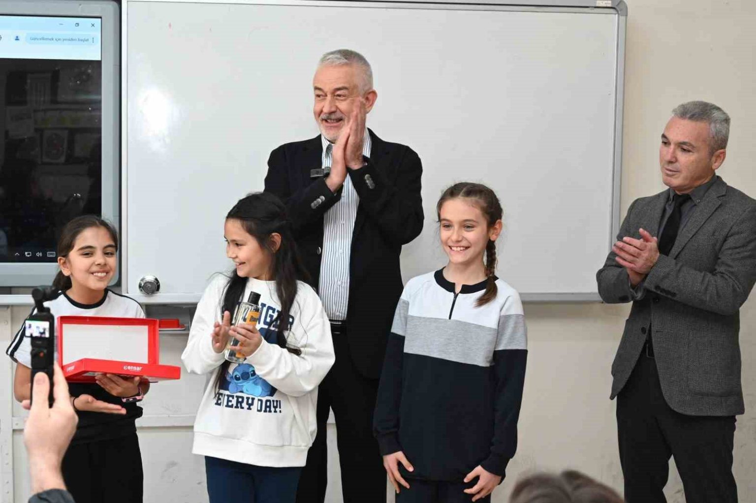 Sınıf başkanı Bilge Mercan Orhan da sınıf başkanlığına aday olduğunu ve demokrasinin gereği olarak başkan seçildiğini söyledi. Belediye Başkanı Şükrü Başdeğirmen’i sınıfa davet için arkadaşlarına söz verdiğini ifade eden Orhan, “Başkanımız sınıfımıza kadar geldi. Geldiğiniz için teşekkür ederim” dedi.