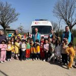 Sağlık ekipleri tarafından ambulansın çalışma sistemi hakkında bilgilendirilen öğrencilere, trafikte ambulanslara geçiş üstünlüğü sağlanmasının hayati önem taşıdığı vurgulandı. Eğitici ve bilgilendirici içeriklerle gerçekleştirilen etkinlikte, çocukların küçük yaşlardan itibaren sağlık bilinci kazanmaları hedeflendi.