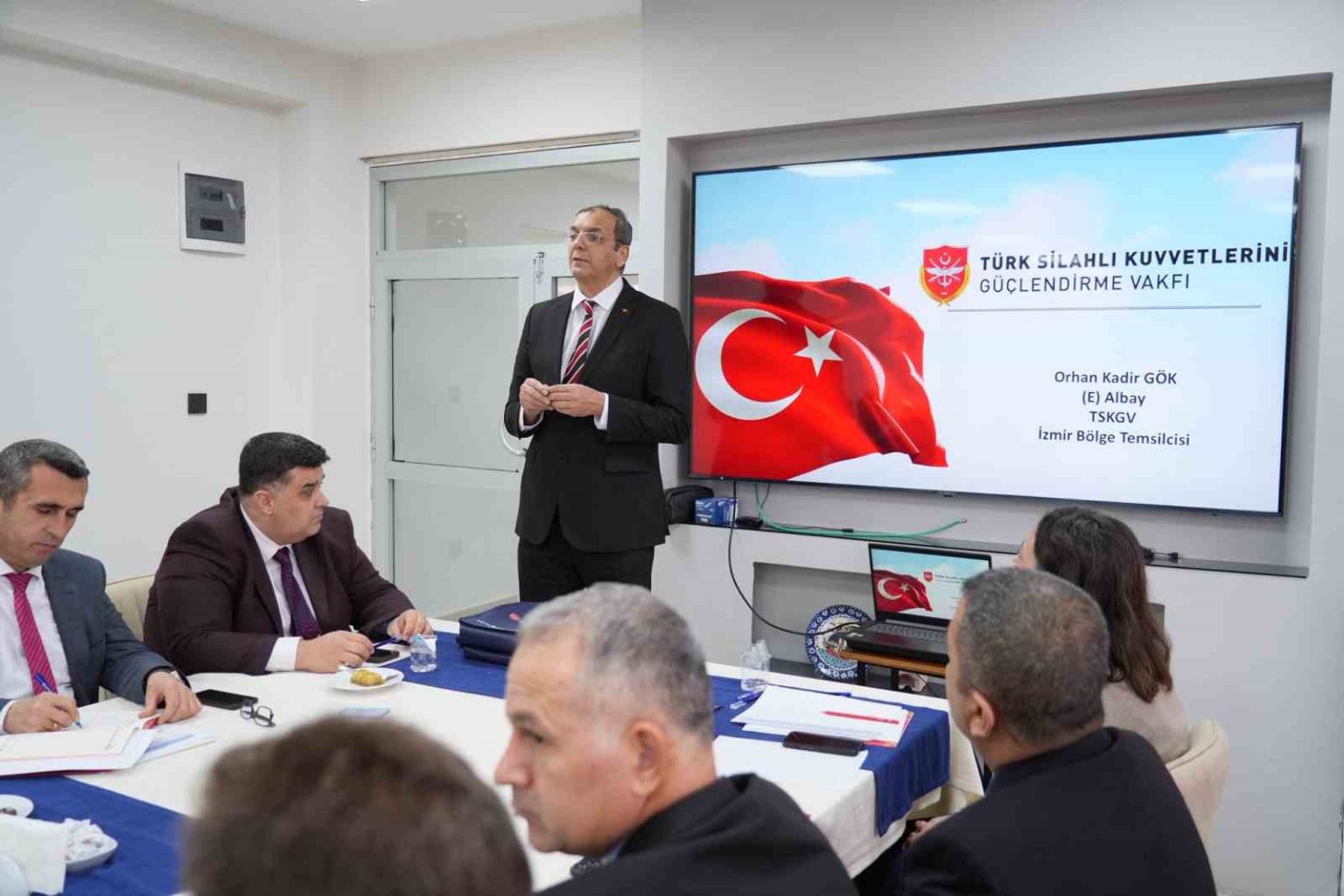 Toplantının dikkat çeken bir diğer bölümünde ise Türk Silahlı Kuvvetlerini Güçlendirme Vakfı İzmir Bölge Temsilcisi Emekli Albay Orhan Gök bir sunum gerçekleştirdi. Sunumda, vakfın faaliyetleri ve eğitim kurumlarıyla yapılabilecek iş birlikleri üzerine bilgilendirmeler yapıldı.
