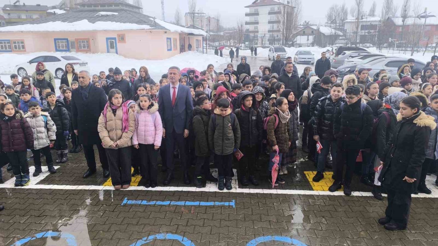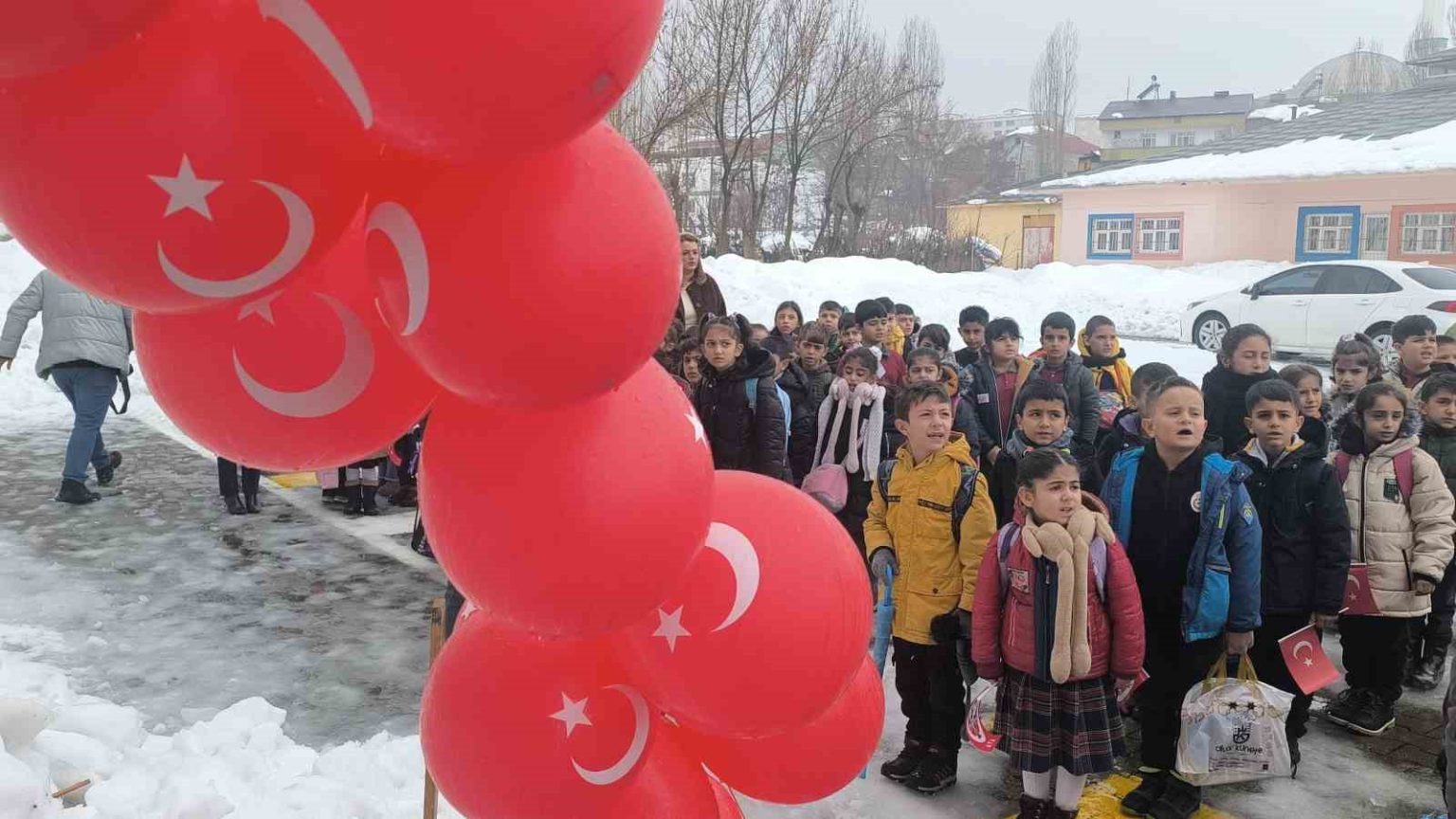 Muş’ta yarıyıl tatilinin sona ermesiyle öğrenciler ders başı yaptı. Milli Eğitim Bakanı Yusuf Tekin’in çağrısı üzerine okullarda ilk ders “Bayrak Sevgisi” temasıyla işlendi, öğrenciler okula Türk bayraklarıyla geldi.