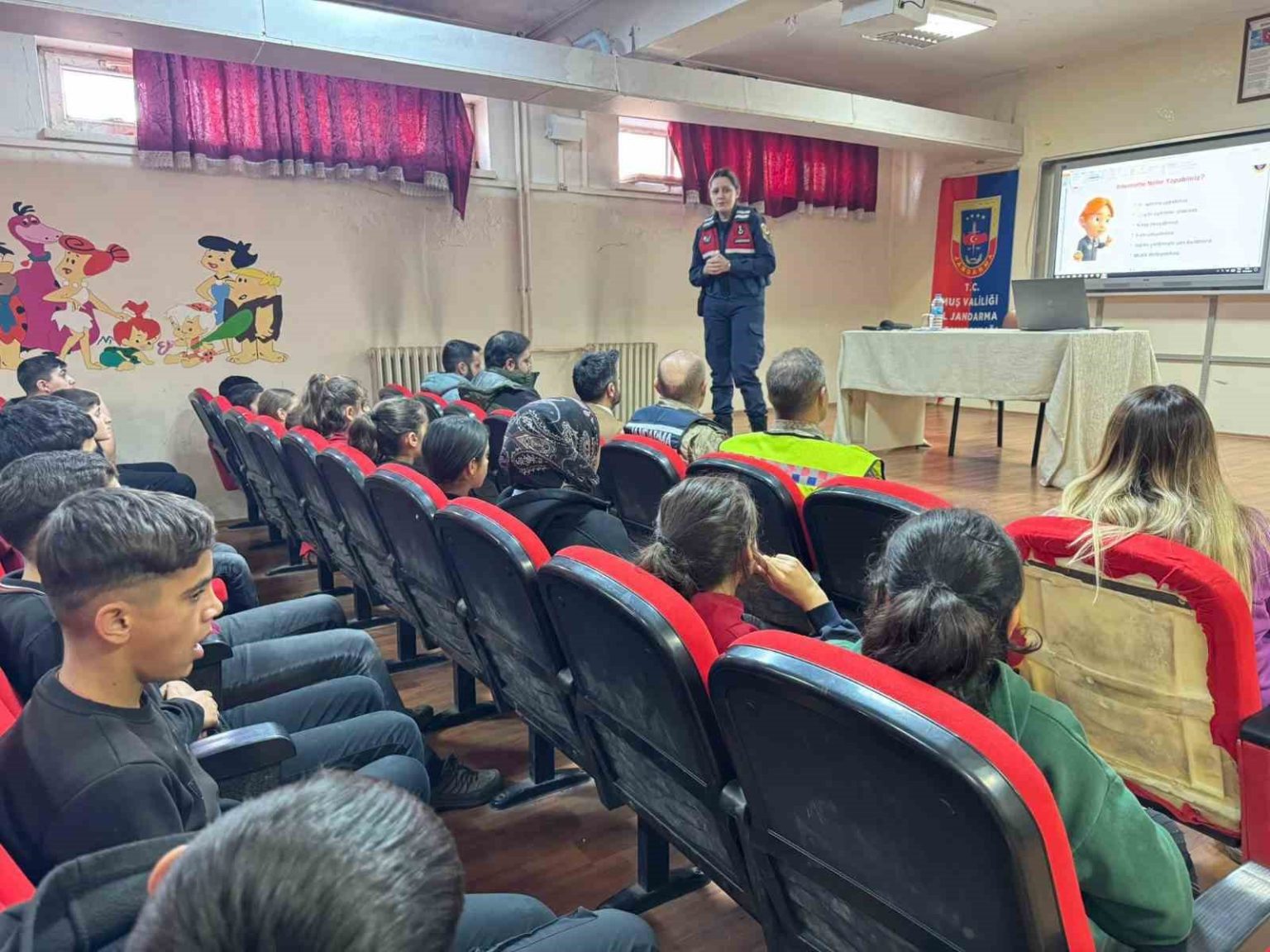Muş İl Jandarma Komutanlığı, Asayiş Şube Müdürlüğü/Aile İçi Şiddetle Mücadele ve Çocuk Kısım Amirliği ile Siber Suçlarla Mücadele Şube Müdürlüğü ekiplerinin katılımıyla Taşoluk İmam Hatip Ortaokulu’nda öğrencilere eğitim verildi.