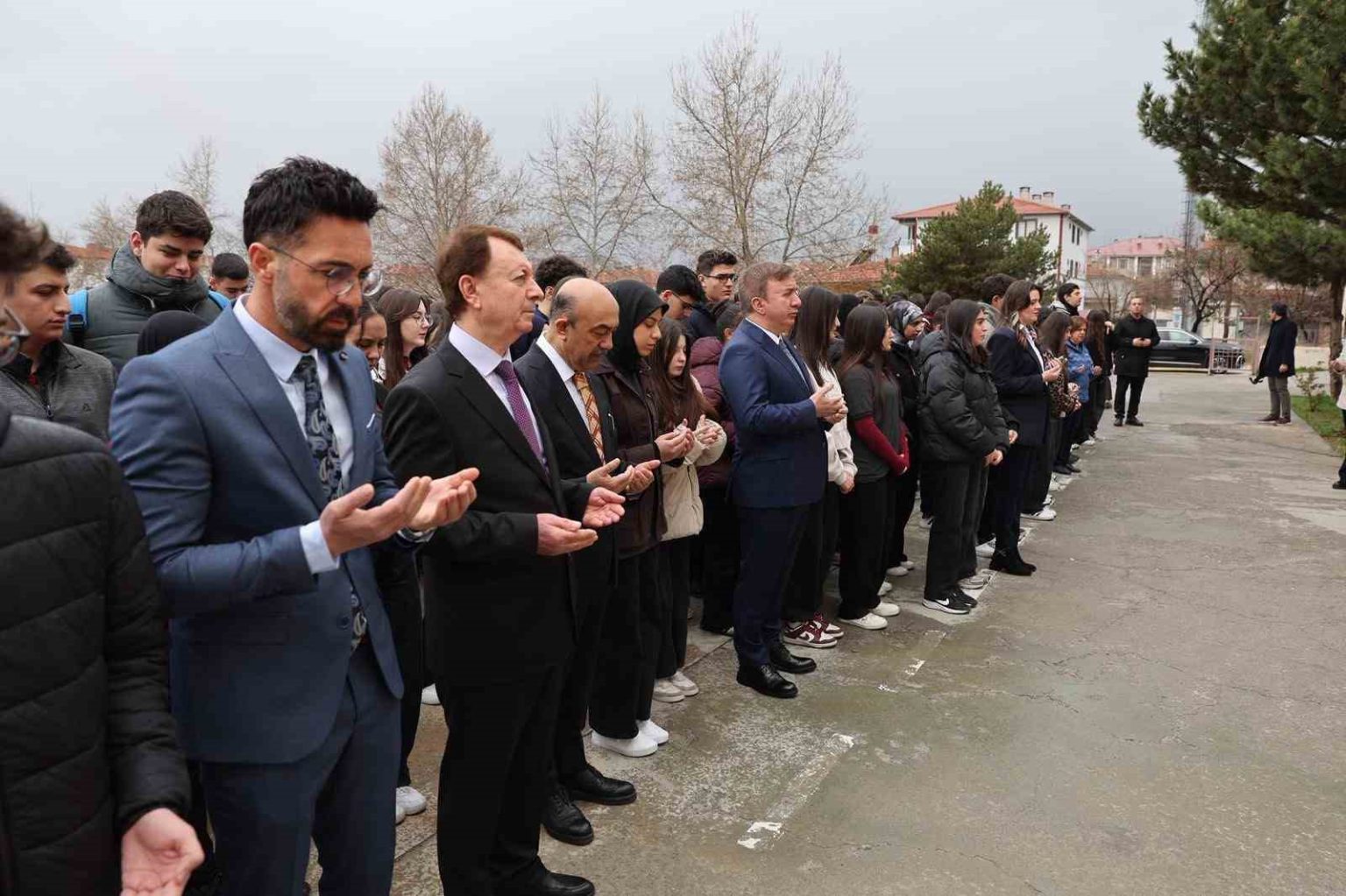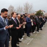 Ziyarette, Kahramanmaraş’ta şehit olan öğretmenler ve öğrenciler ile tüm aziz şehitler için saygı duruşunda bulunulmasının ardından İstiklal Marşı okundu ve dualar edildi.