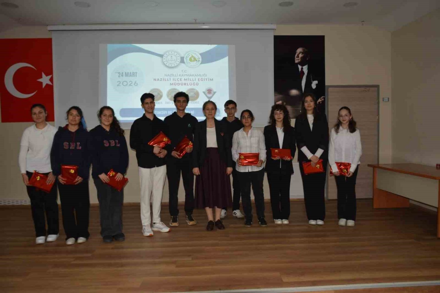 Aydın’da Nazilli Kaymakamlığı öncülüğünde İlçe Milli Eğitim Müdürlüğü tarafından bilim yarışmalarında projeleriyle dereceye giren ve İSO Belgelendirme Sistemiyle belge almaya hak kazanan okullar için tören düzenlendi.