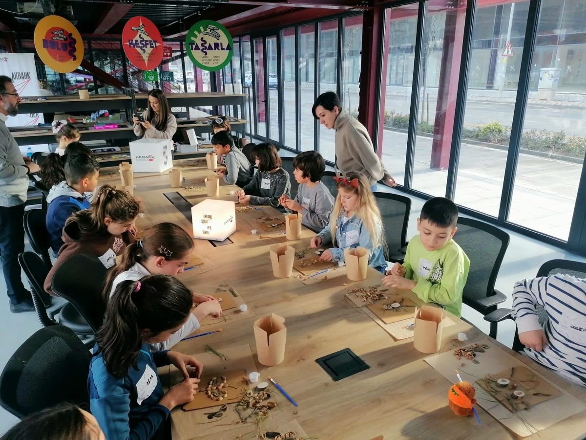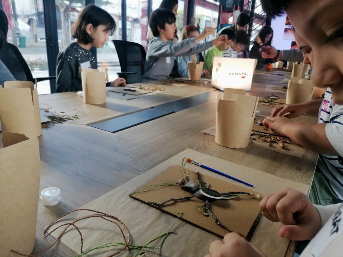Günün ikinci etkinliği olan “Dönüşüm” atölyesinde ise odak noktası edebiyat ve doğa gözlemi oldu. Franz Kafka’nın Dönüşüm romanından esinlenilerek hazırlanan içerikte çocuklar, böceklerin ve küçük canlıların dünyasını mercek altına aldı. Makro fotoğraflar üzerinden canlıların renk, desen ve biçimlerini detaylıca inceleyen katılımcılar, bu gözlemlerden yola çıkarak kendi hayali böceklerini tasarladı.
