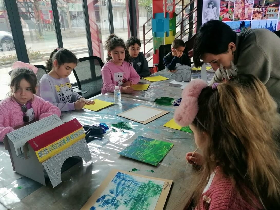 Nilüfer Belediyesi ve Akbank Sanat iş birliğiyle Pancar Deposu’nda düzenlenen atölyelerde çocuklar sanatla buluştu. Eğitmen Merve Kireçtepe Salihoğlu eşliğinde gerçekleşen etkinliklerde katılımcılar, Hale Asaf’ın izinde Bursa’yı kübik formlarla resmederken, Kafka’dan ilhamla kendi hayali tasarımlarını oluşturdu.